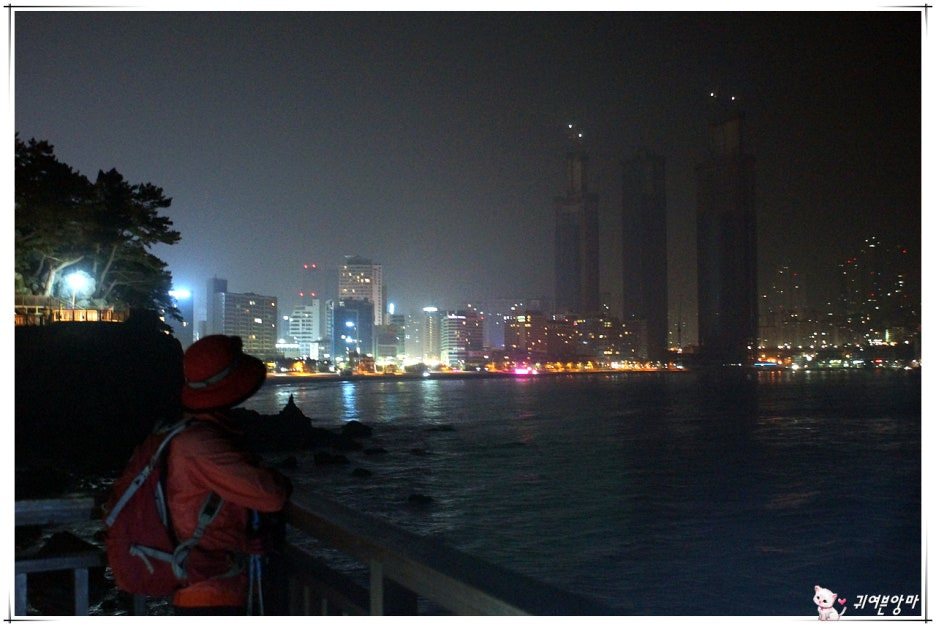 등 뒤쪽엔 기장 바닷가의 화려한 불빛이...어둔 밤을 아름답게 수놓고 있네요.