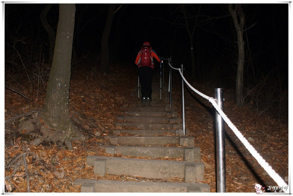 골프장의 눈부신 불빛을 잠시 둘러보다가...발길 돌려 수령산 정상으로 계단길 올라갑니다.