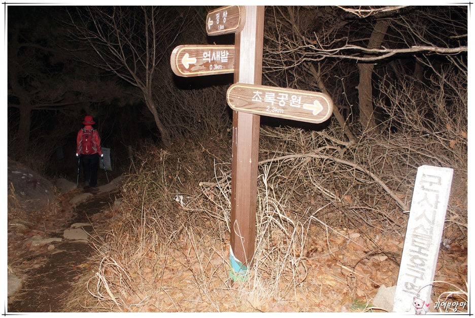 어둔밤에 무심코 앞만보고 가느라 안내판과 갈림길이 있는줄 모르고 지나쳤었는데...큰일날뻔 했습니다.