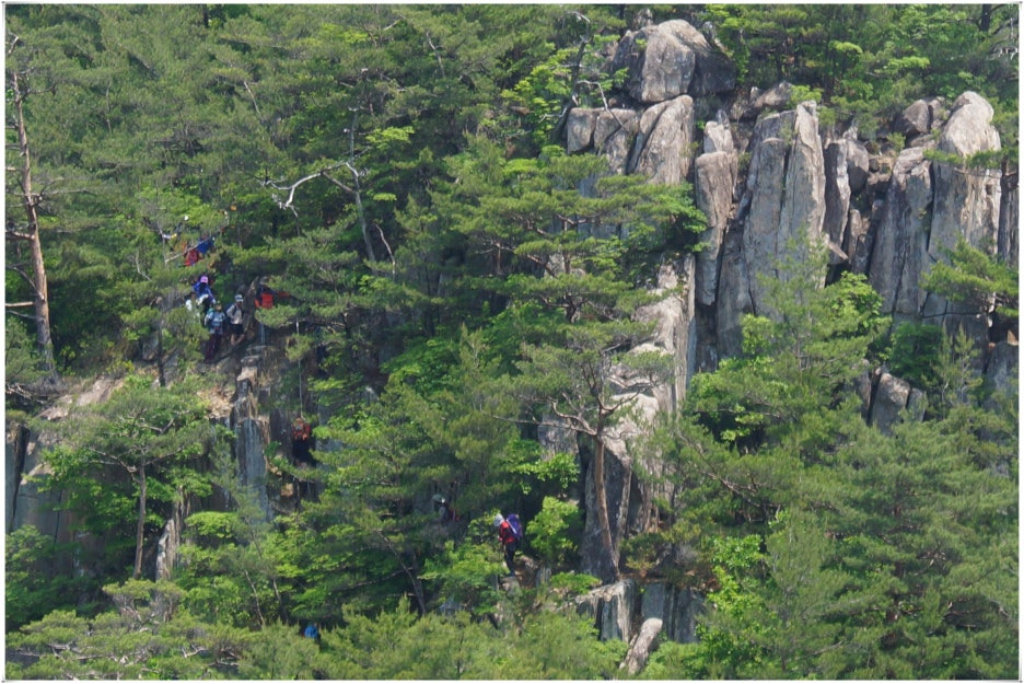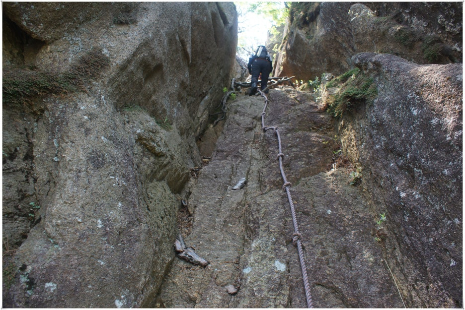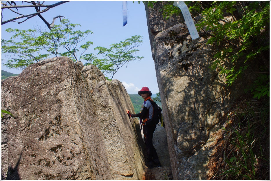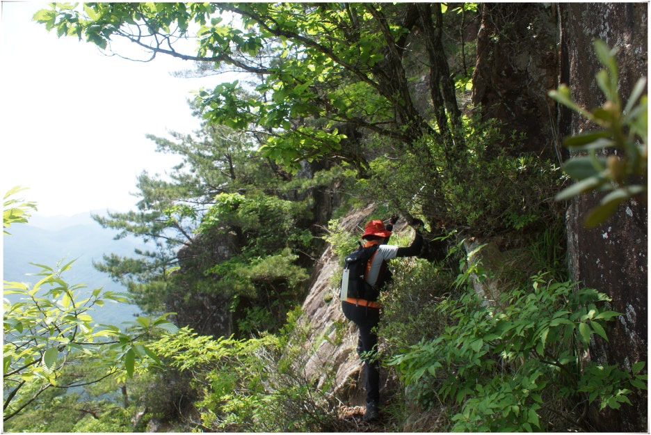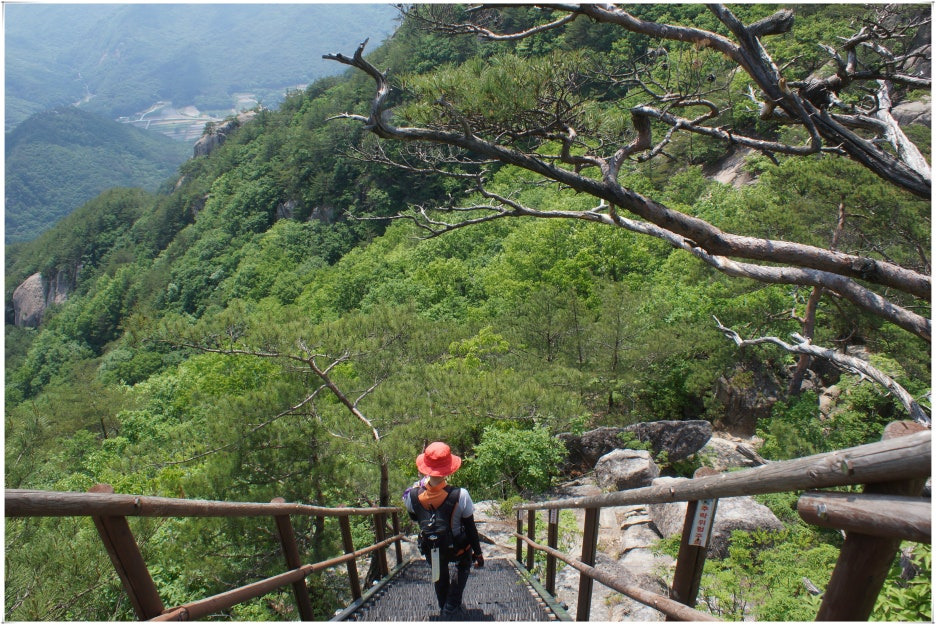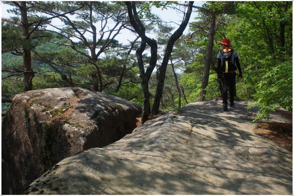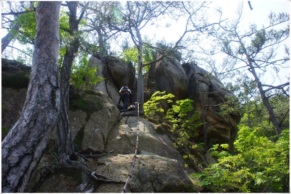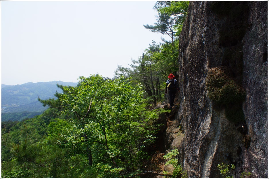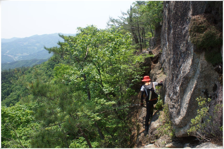 오른쪽엔 직벽...왼쪽은 아주 가파른 낭떠러지....
