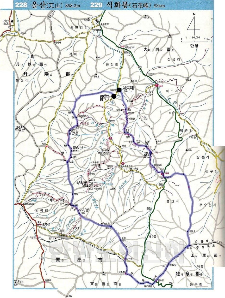 지도를 펼쳐놓고...봉우리와 능선을 서로 잇는....