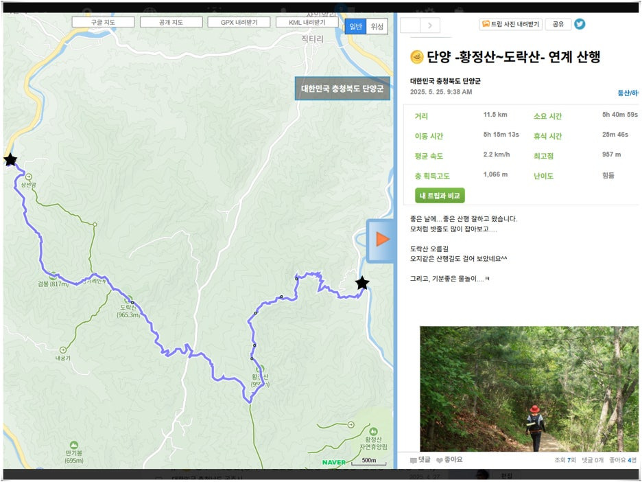 [단양] - 황정산~도락산 -...거리 및 고도표