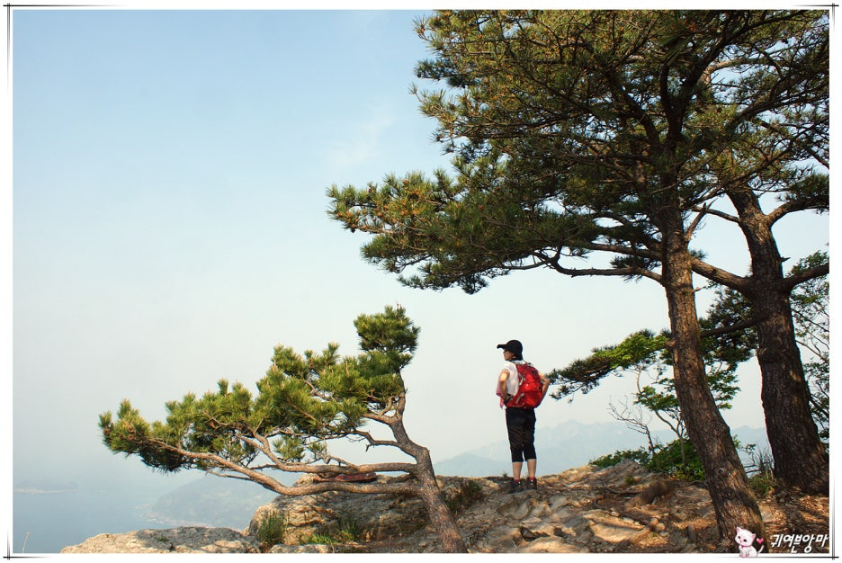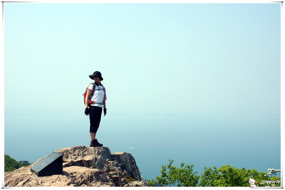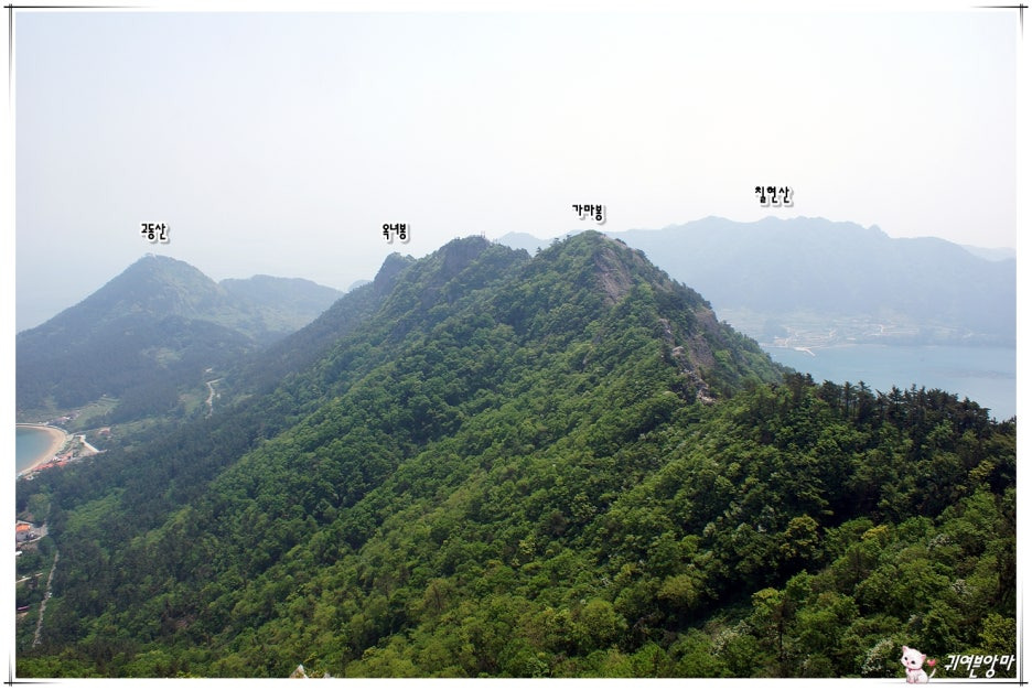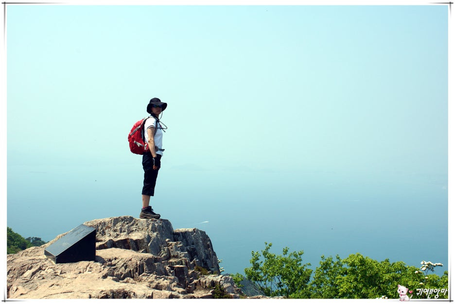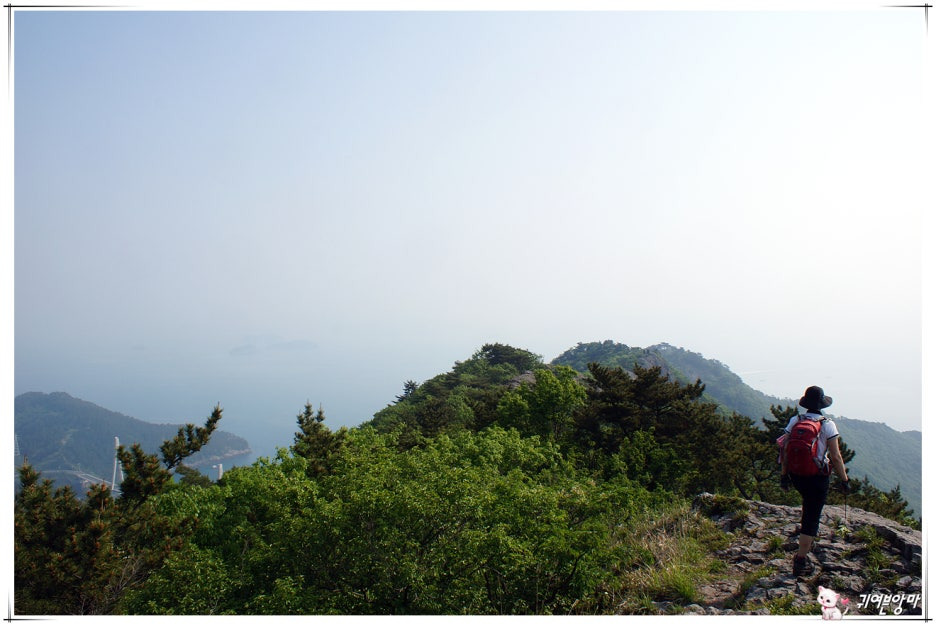 봉우리 뒤쪽으로...삼천포 화력발전소가 흐릿하게 보이네요.