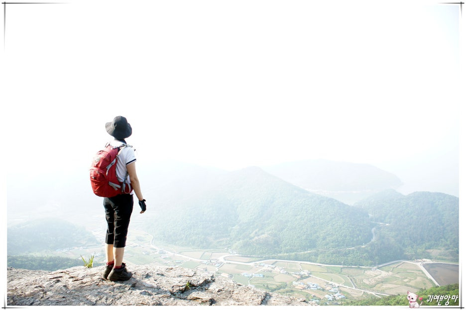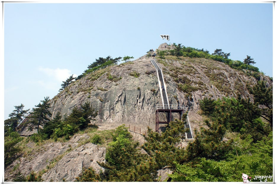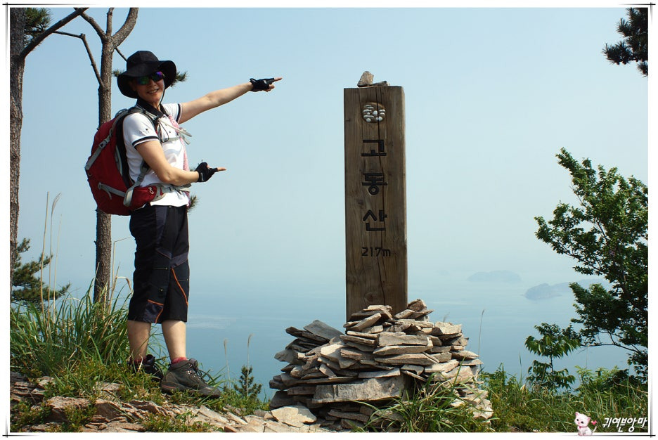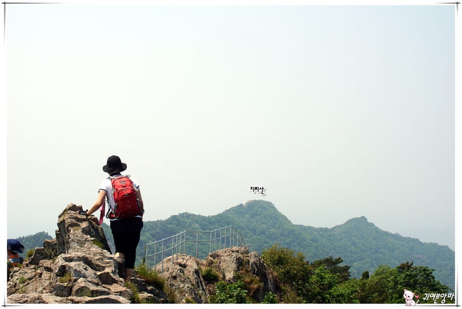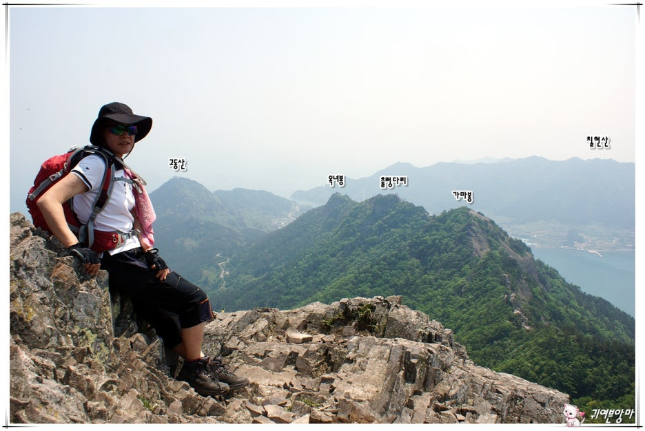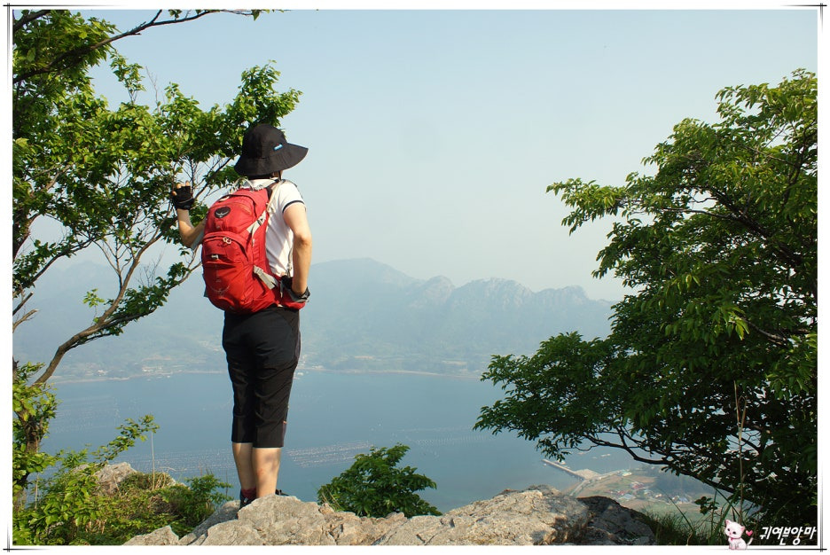 봉우리 뒤쪽으로...삼천포 화력발전소가 흐릿하게 보이네요.