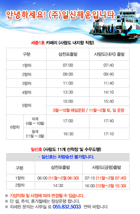 삼천포에서 사량도에 들어가는 배편을 알아보니...세종호와 일신호가 있네요.