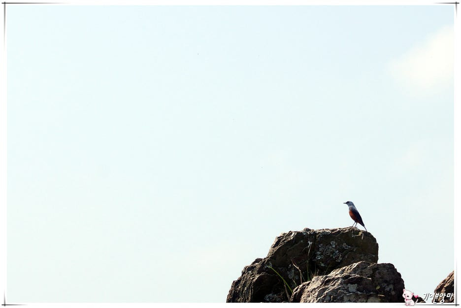 출렁다리를 건너 바윗길을 돌아서 가려는데...저기 위에 새 한마리가....