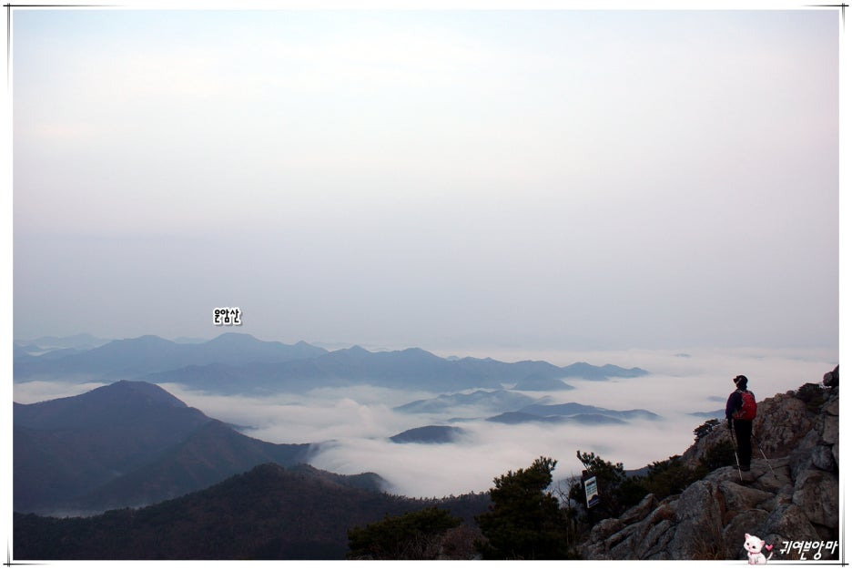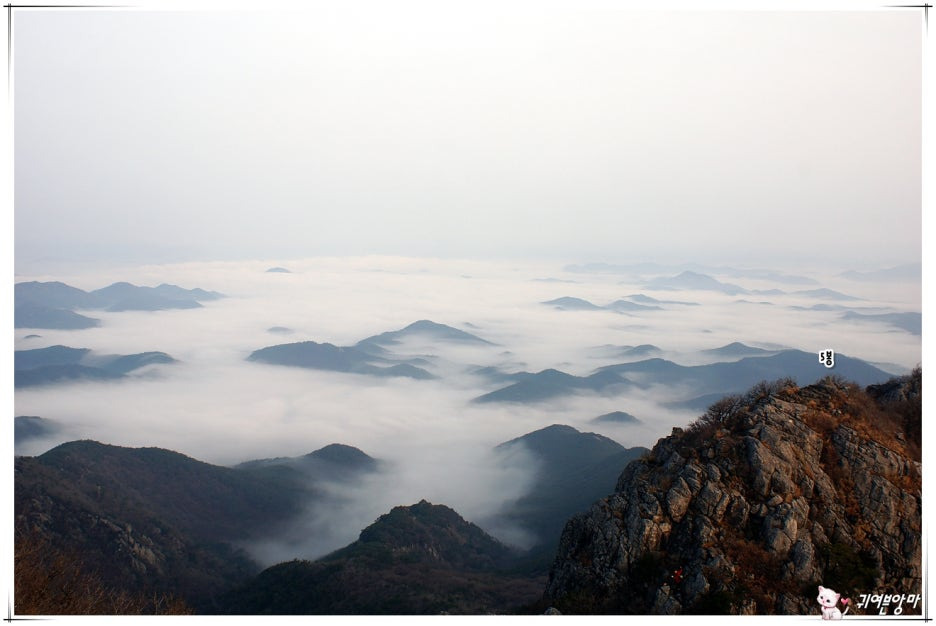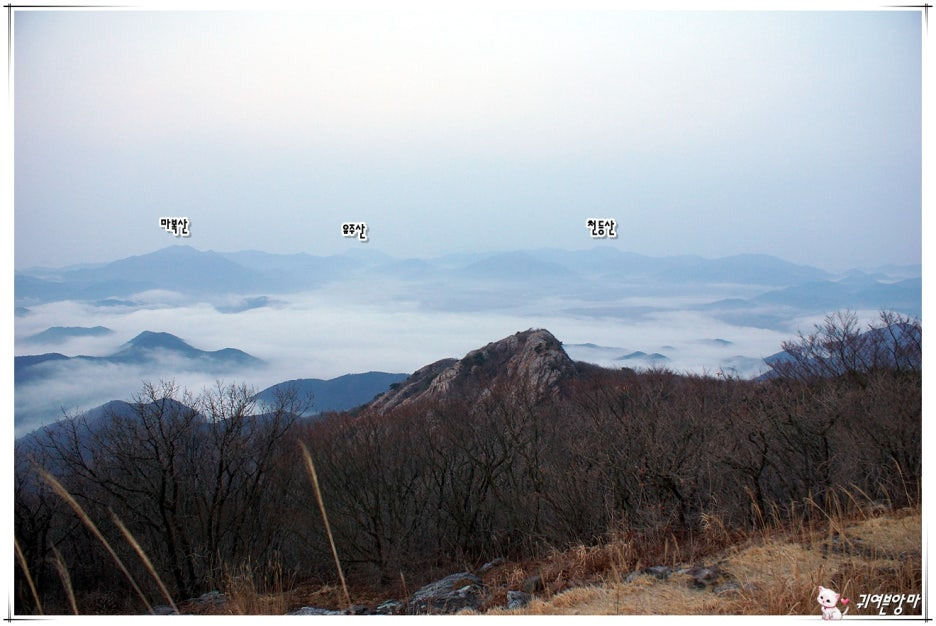 하이얀 춤을 추는 운해 건너에...유주산과 천등산이 아련하게만 보이네요.