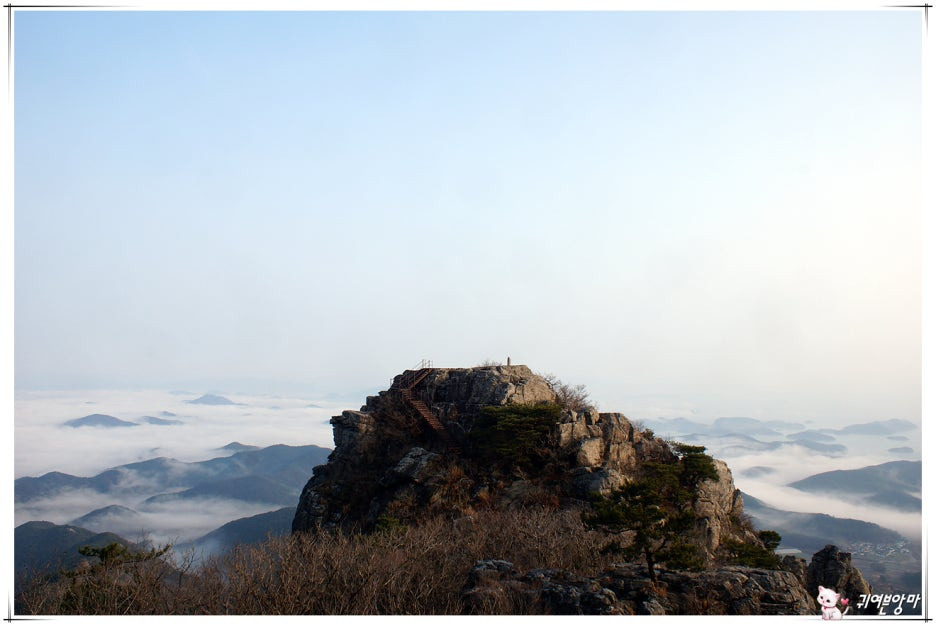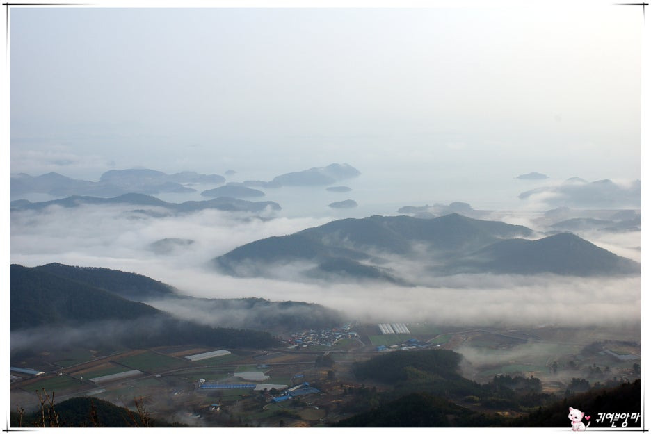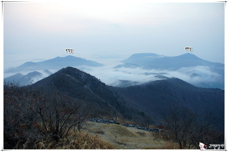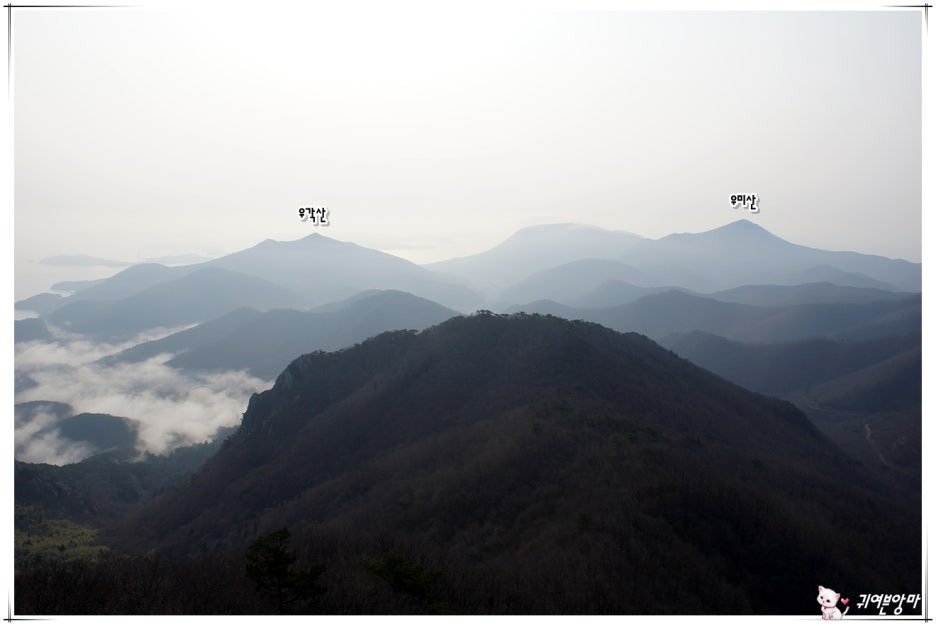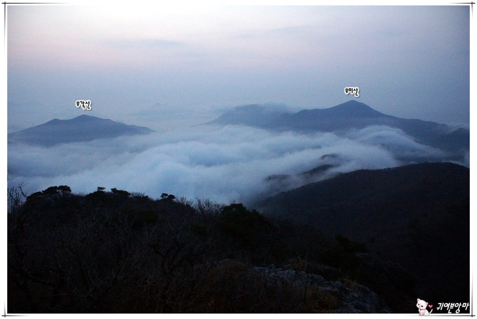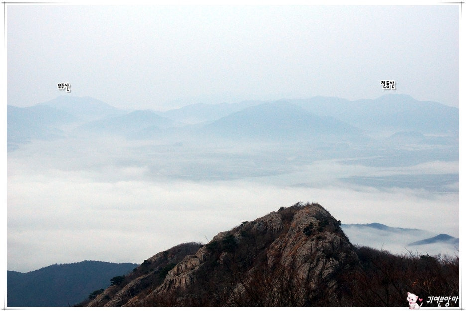 그 뒤쪽으로 우각산과 우미산이...하얀 구름바다위에 섬같이 솟아 있습니다.