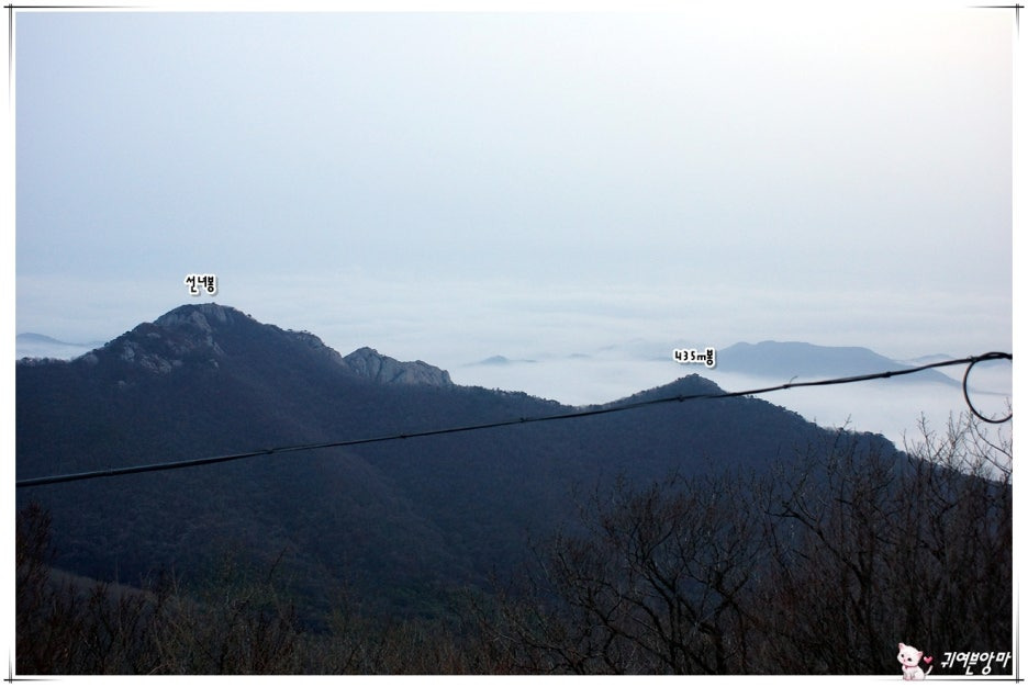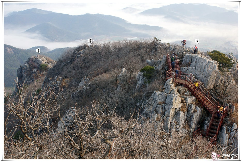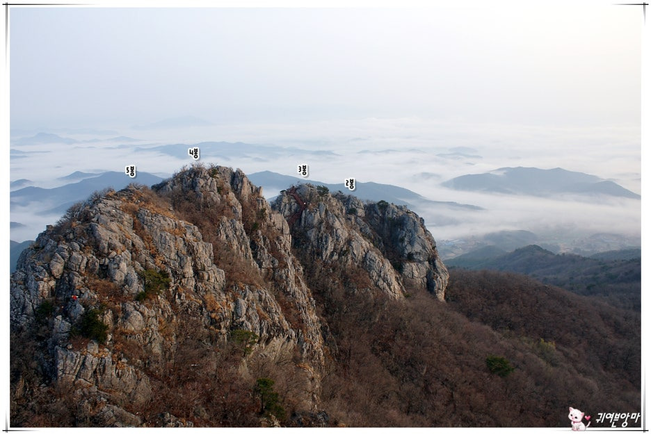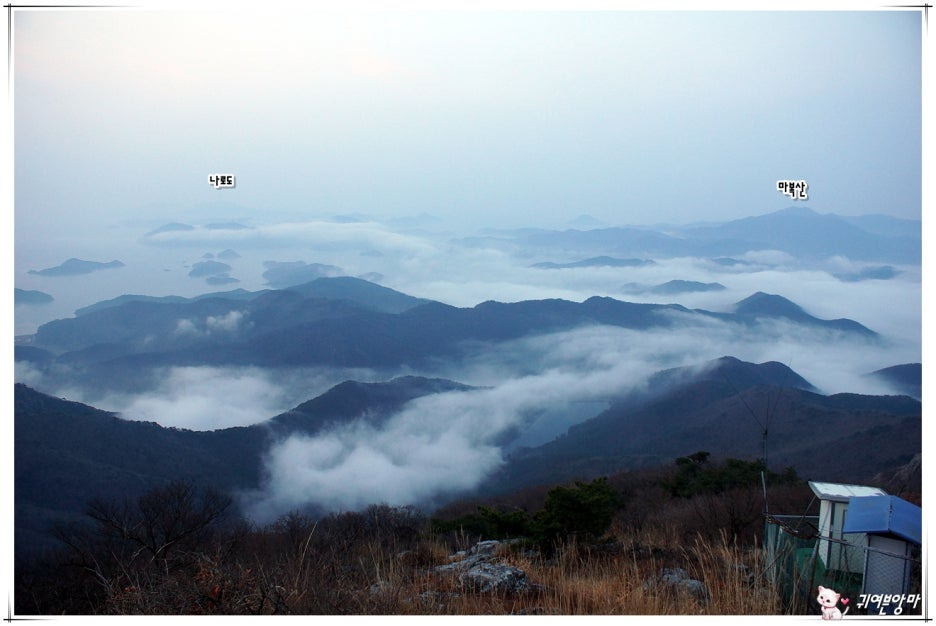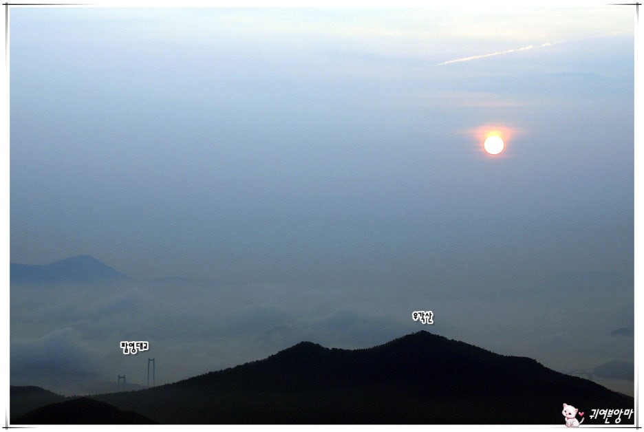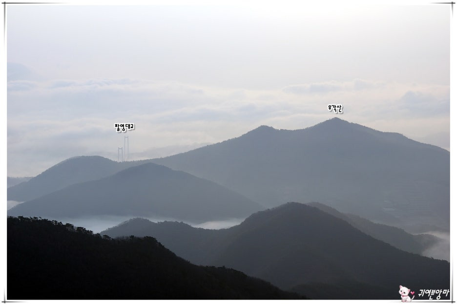 그 뒤쪽으로 우각산과 우미산이...하얀 구름바다위에 섬같이 솟아 있습니다.