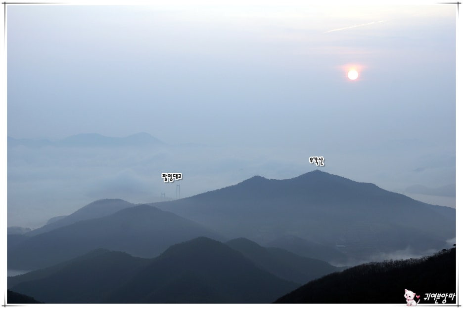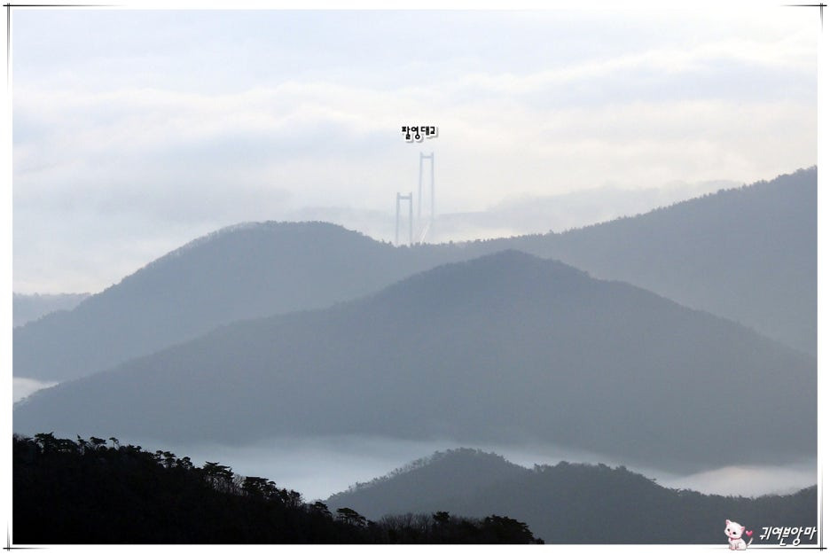 우각산 뒤쪽으로의 팔영대교는...주탑만이 모습을 드러낸 채 신비로움을 더하네요.