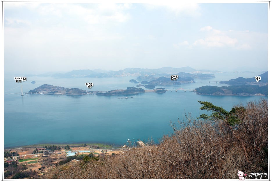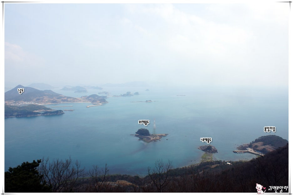 우미산 오른쪽으로는...점점이 떠있는 남해 작은섬들도 보이고....