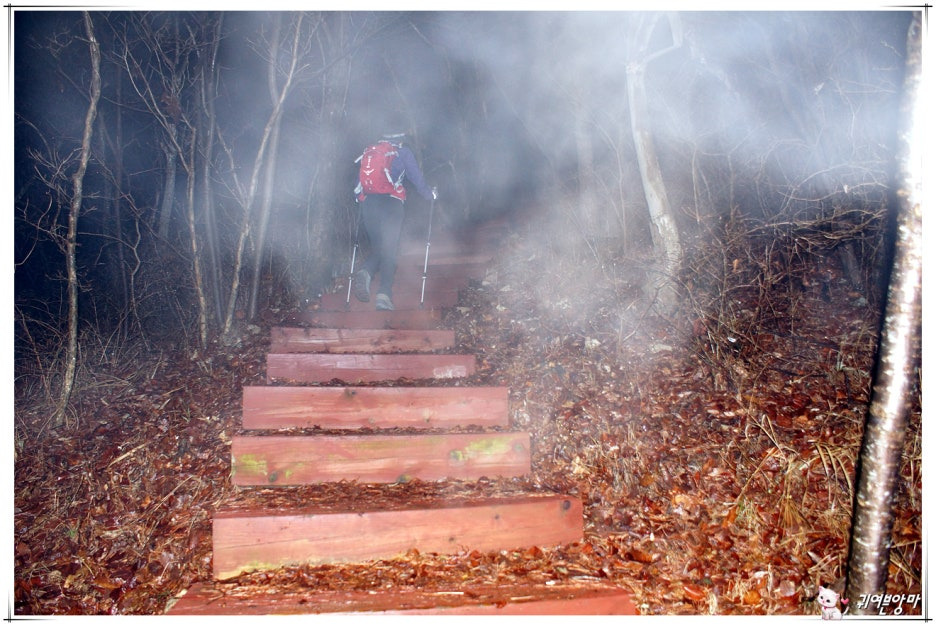 쉼없이 올라가는 가파른 오름길 주변은...어느 사이 운무속에 잠겨 버렸네요.