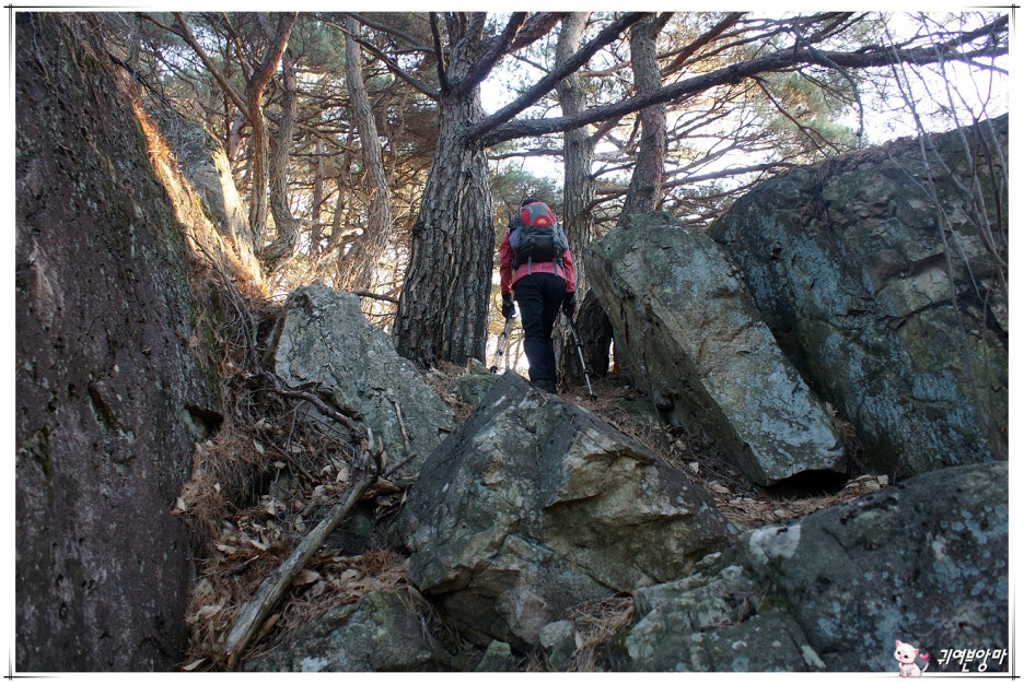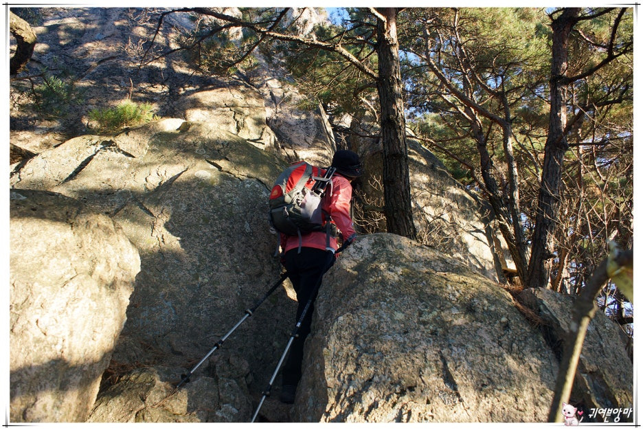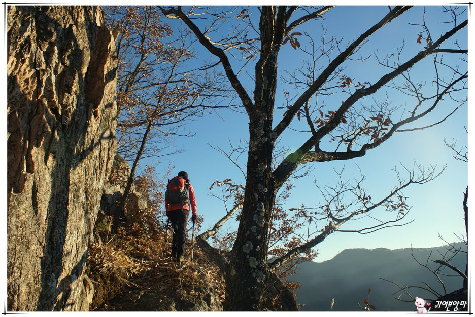 나뭇가지가 살짝 가리지만...깨끗하게 전망이 트인 바위 오름길입니다.