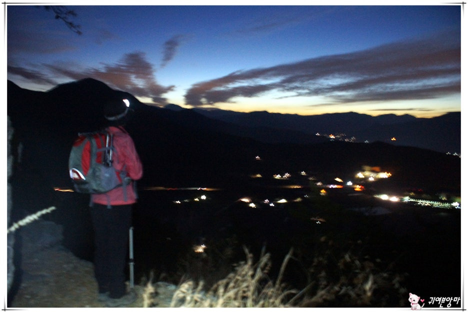 이렇게나 가까이 보이는 구만산인데...저곳에 도착할때쯤엔 햇님과도 작별해야 했네요.