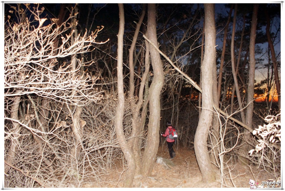 숲속엔 어느새 어둠이 찾아들고...나뭇가지 사이로 보이는 붉은 석양은 아름답기만 하네요.