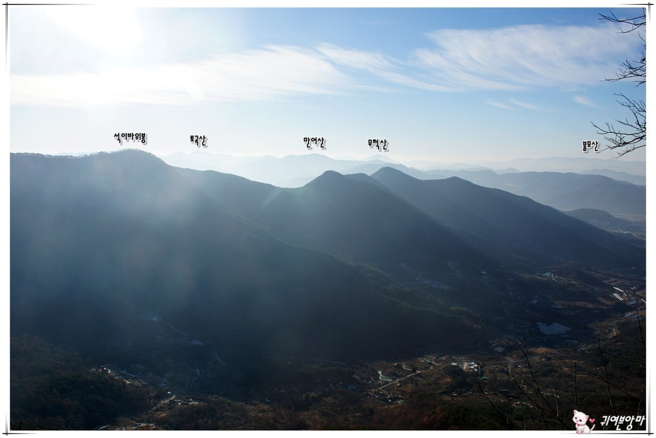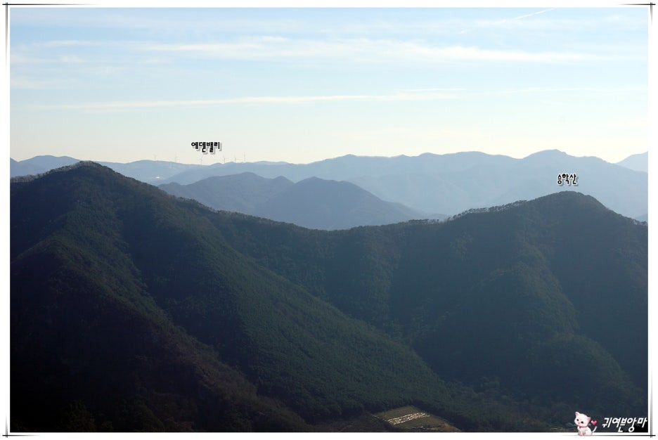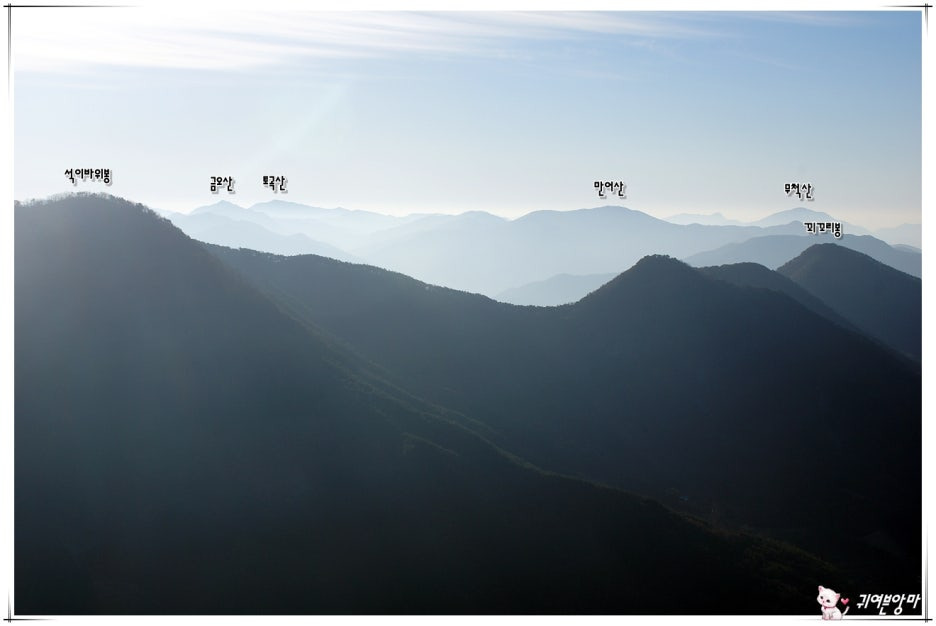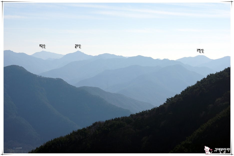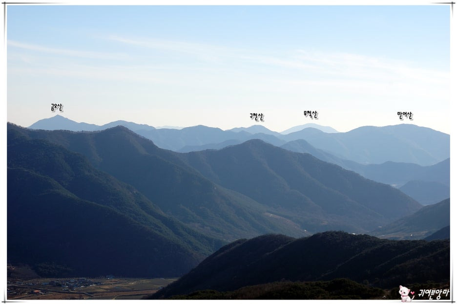 아래쪽으로는 금오산에서 만어산으로 능선은 이어지고...그 뒤쪽으로 무척산도 보이네요.