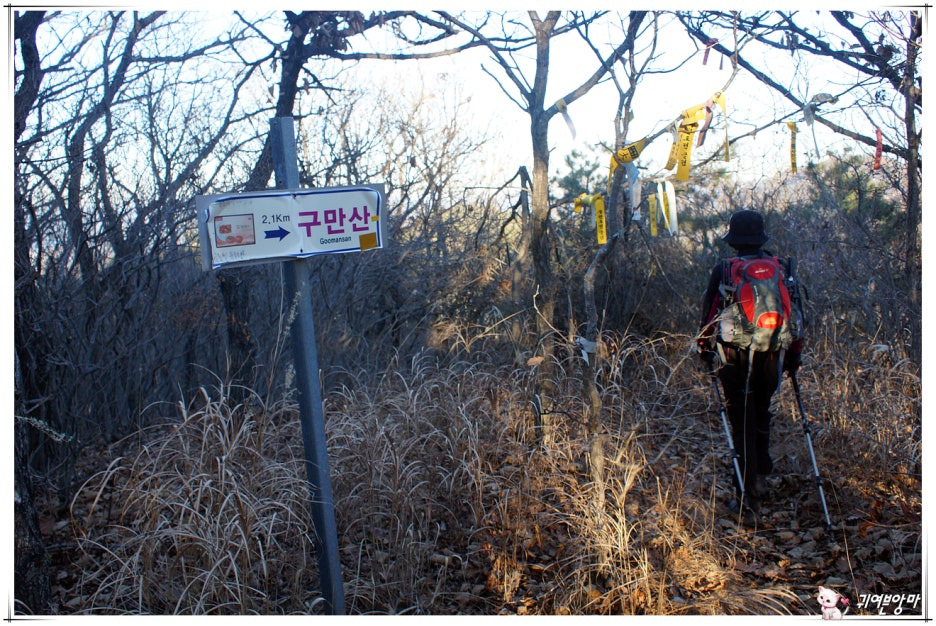 300m 거리의 구만산 정상에 갔다가...다시 이곳으로 돌아와서 하산길 내려가야 합니다.