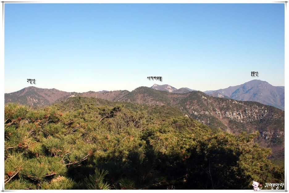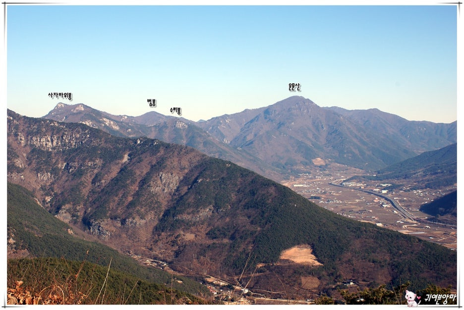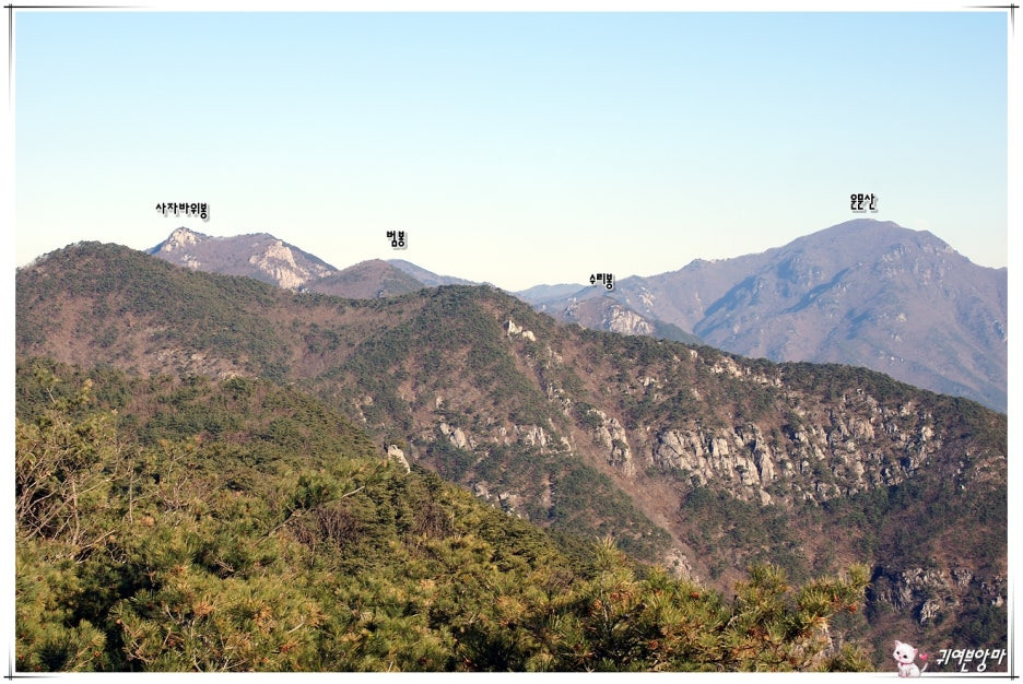 그 능선 뒤쪽으로...사자바위봉과 운문산이 우뚝합니다.