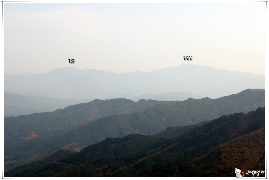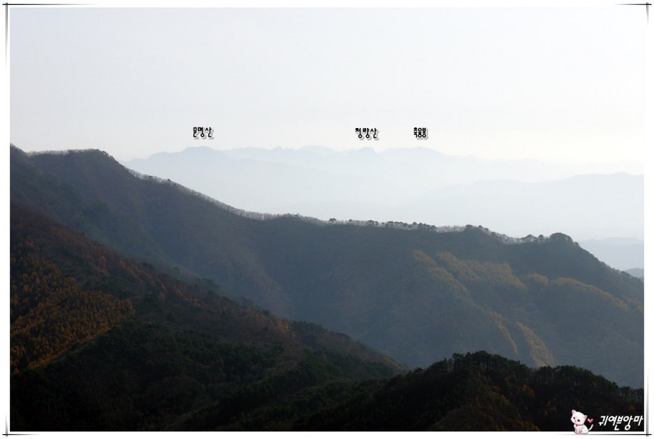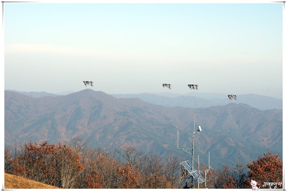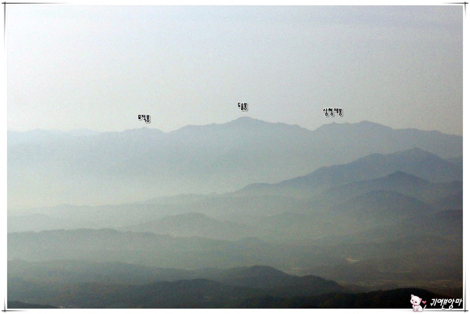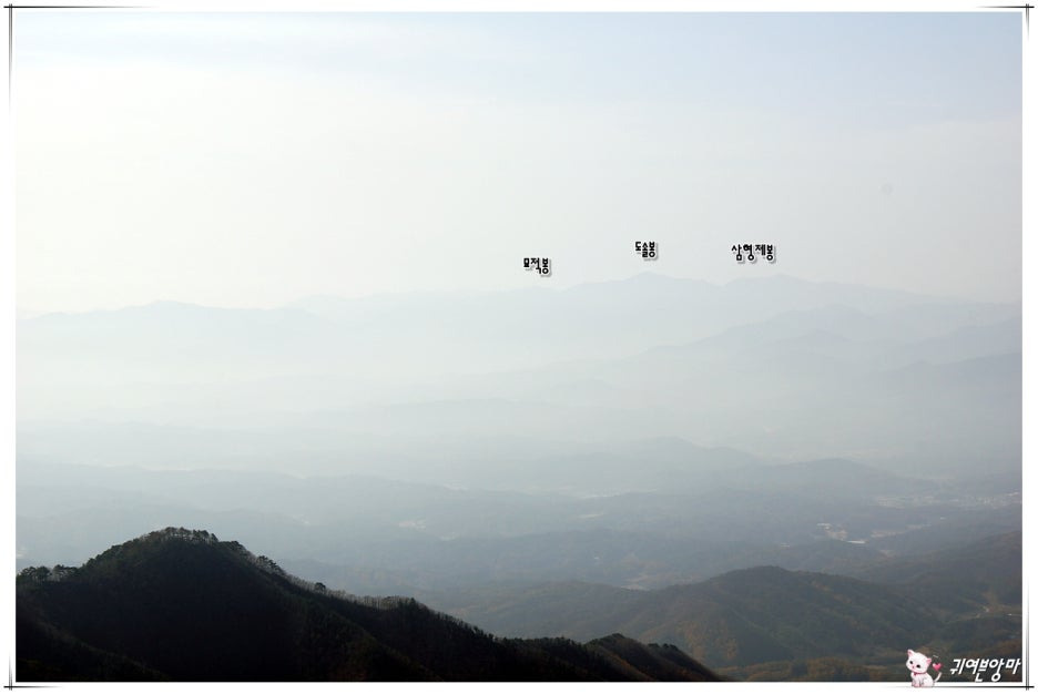 그 뒤쪽으로 얼마전에 찾았었던 오미산과 백병산이...희미하게 눈인사를 보냅니다.
