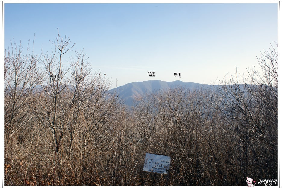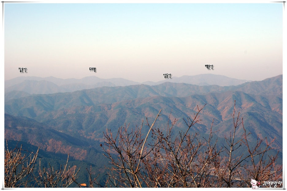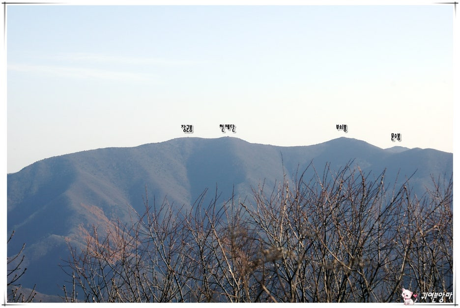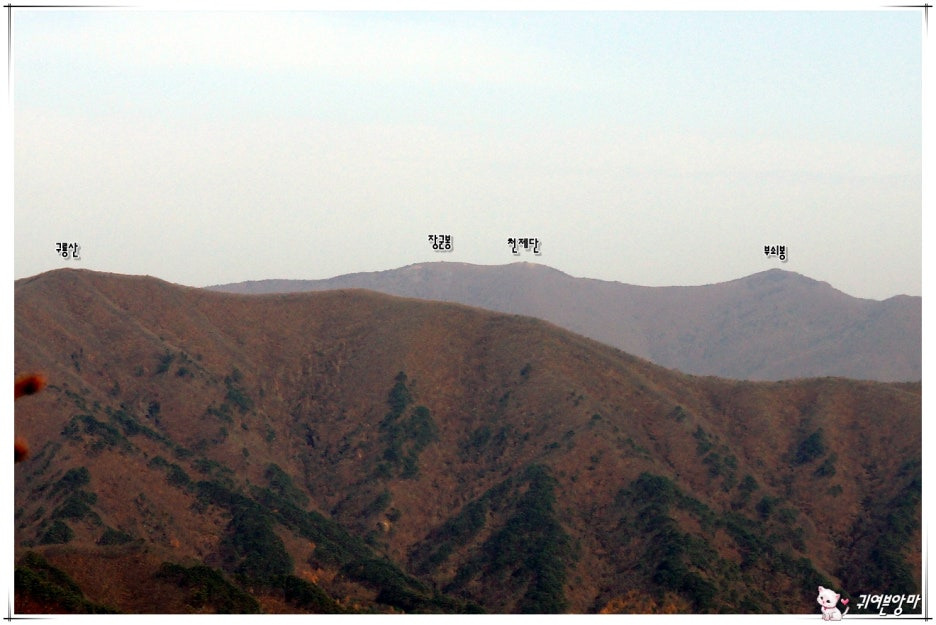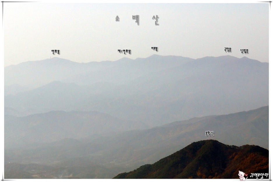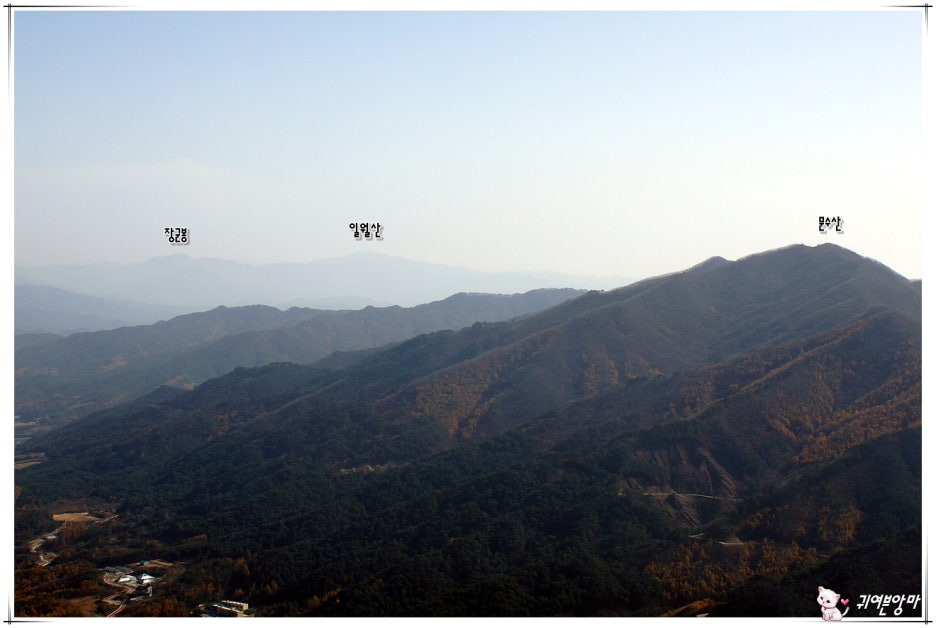 그 뒤쪽으로 얼마전에 찾았었던 오미산과 백병산이...희미하게 눈인사를 보냅니다.