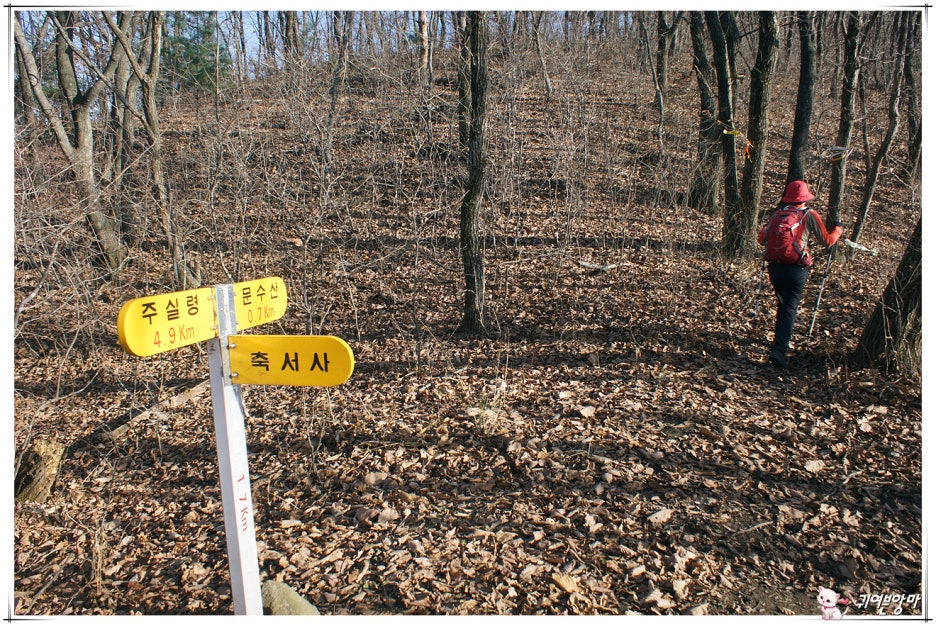 우린 이곳에서 백두대간길과 갈라져...문수산으로 향합니다.