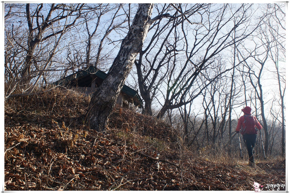 본 능선에 거의 다 올라온 듯 한데...머리위쪽으로 지붕이 살짝 보이네요.
