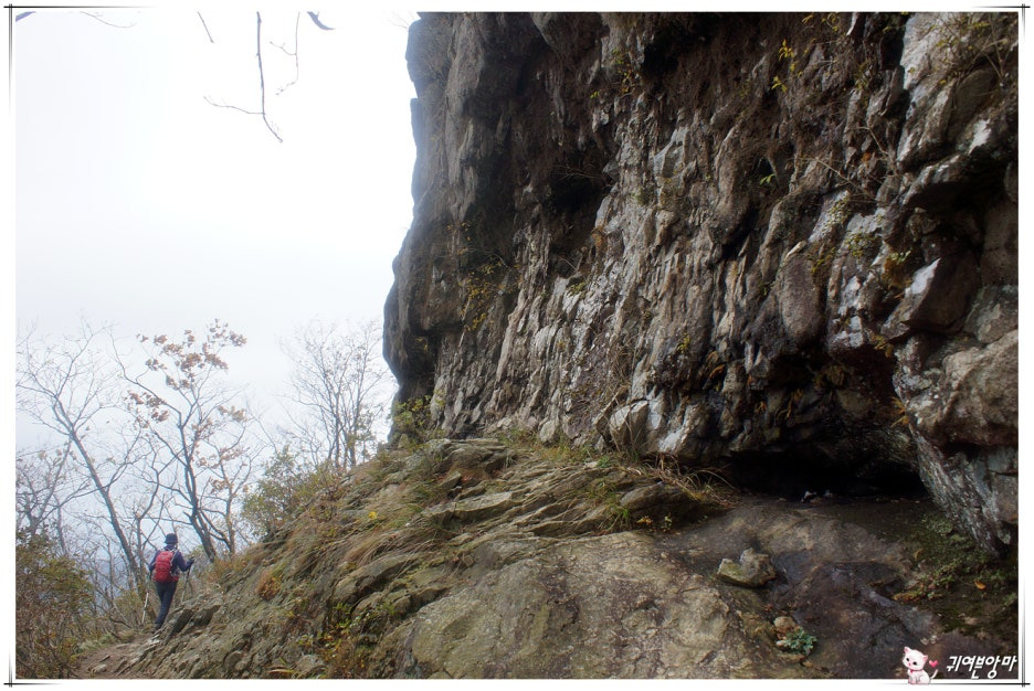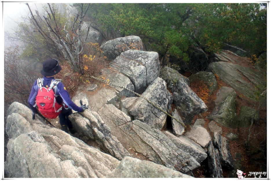 양쪽으로 깍아지를 듯한...낭떠러지 바위 능선길을 만납니다.