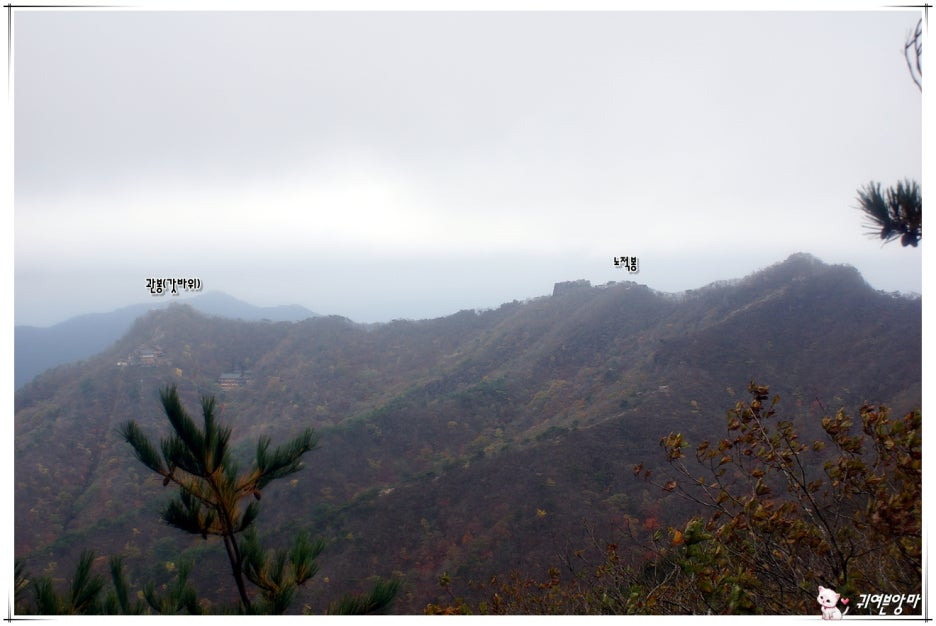 지나갈 능선길에...저만치 갓바위와 노적봉이 보이네요.
