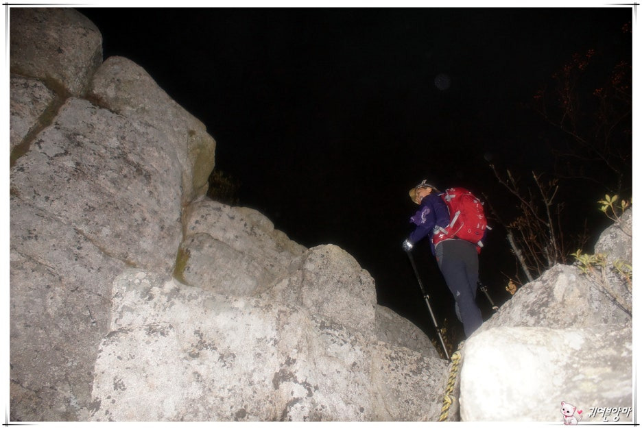새벽에 올랐었던 바윗길을...앞서가는 산객들 뒤를 따라 졸졸졸....^^