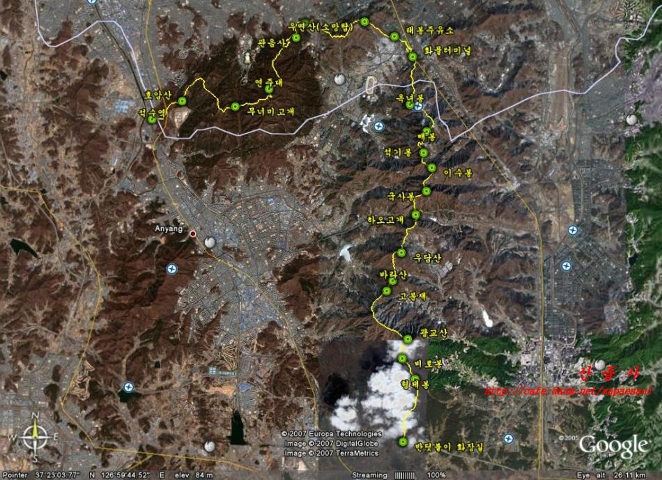 광교산~백운산~바라산~청계산~우면산~관악산~삼성산