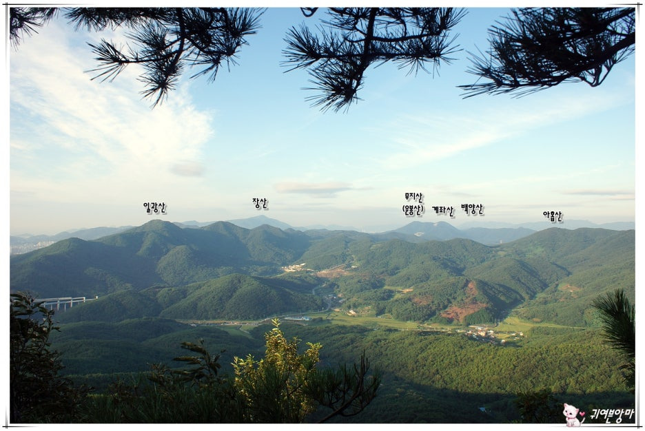 뾰쪽한 용천산 뒤로는...천성산 능선이 정족산으로 이어지고 있습니다.