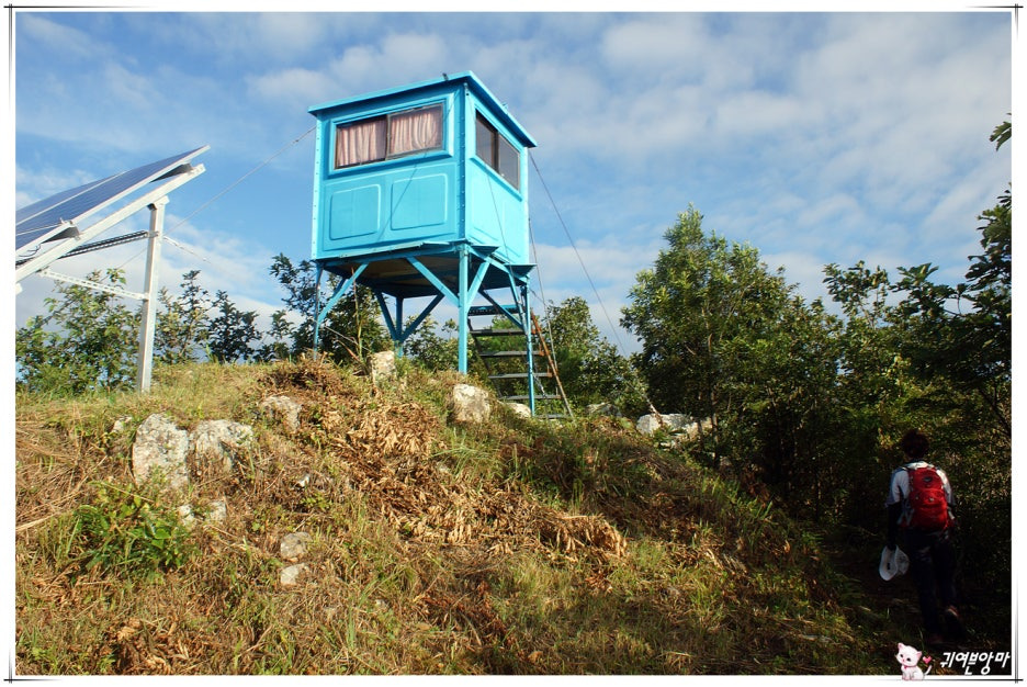 정상에서 내려서면 산불감시초소가 보이고...그 아래쪽에 쉼터도 있습니다.