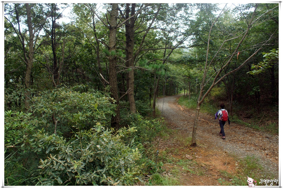역시나 낮은 봉우리 하나 더 올랐다가 내려서니...임도를 마주하고....
