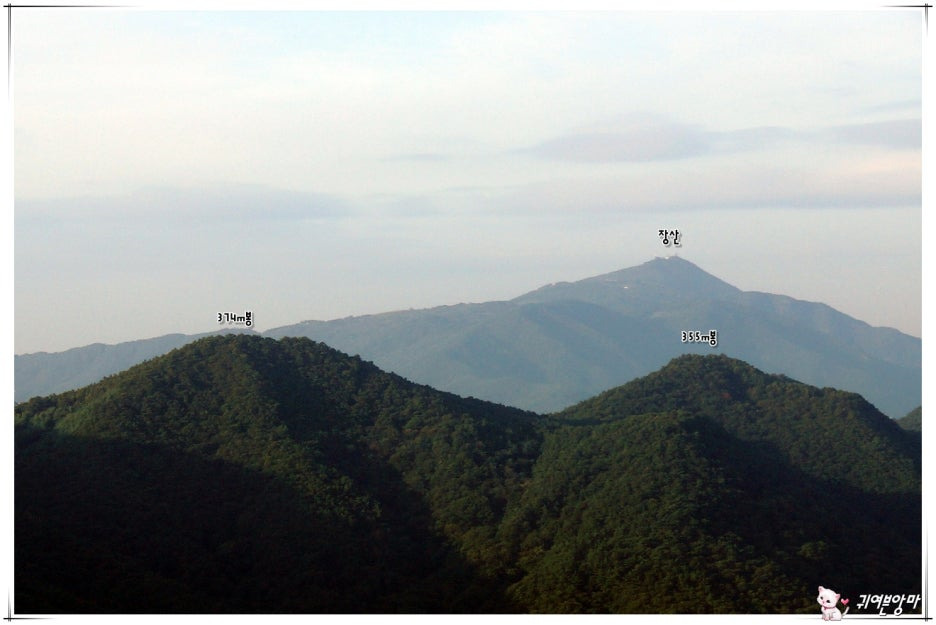 짧지만 힘들게 올랐었던 355m봉도 보이고...그 뒤쪽으로 장산 정상도 햇살에 반짝이네요.