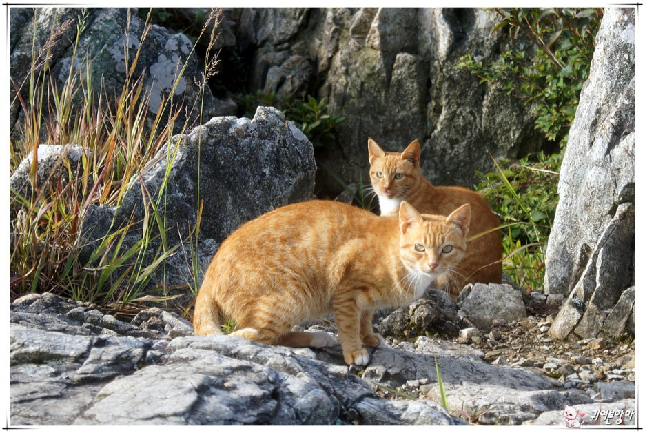 달음산 정상에서 조망을 즐기며 간식을 먹으려는데...어디선가 고양리 두마리가 나타나네요.