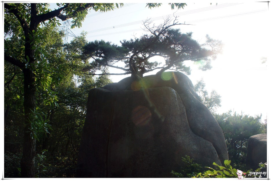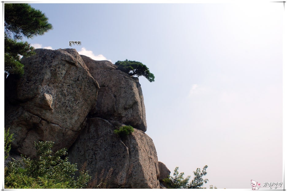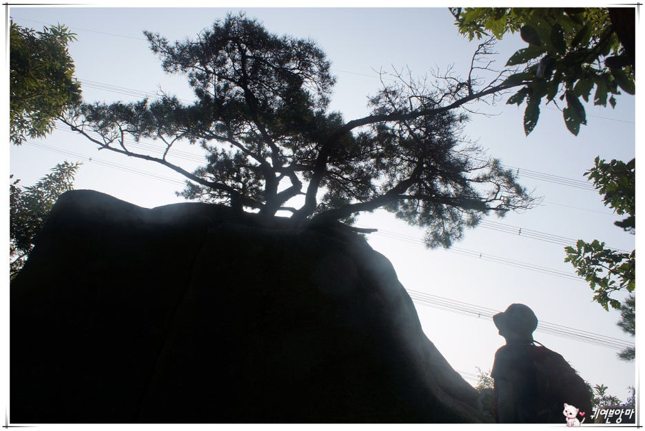 바위 위쪽 소나무는 눈길을 사로잡고...걸쳐져 있는 바윗돌은 위태롭기만 하네요.