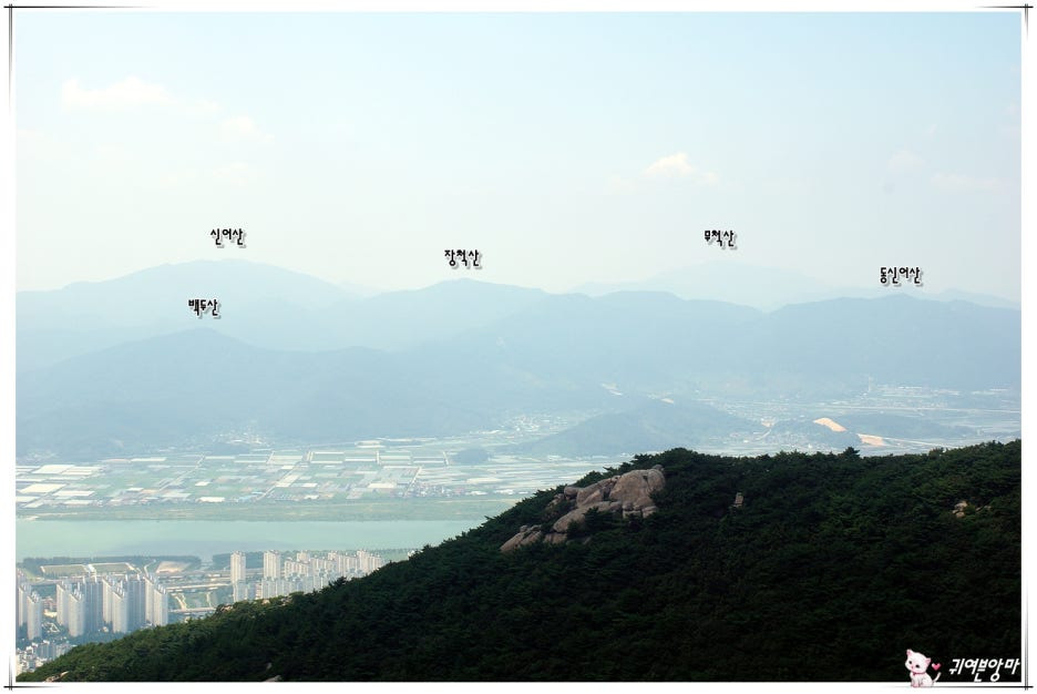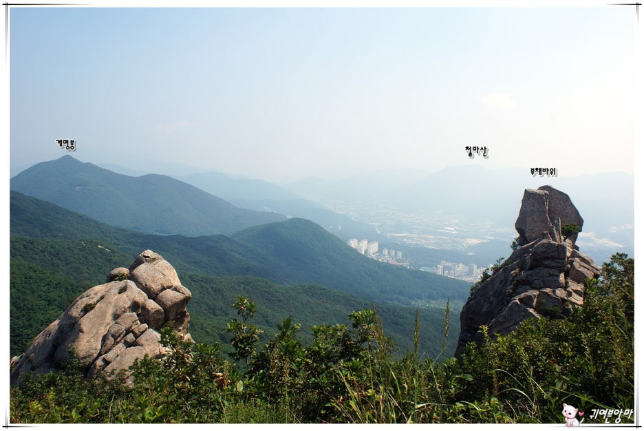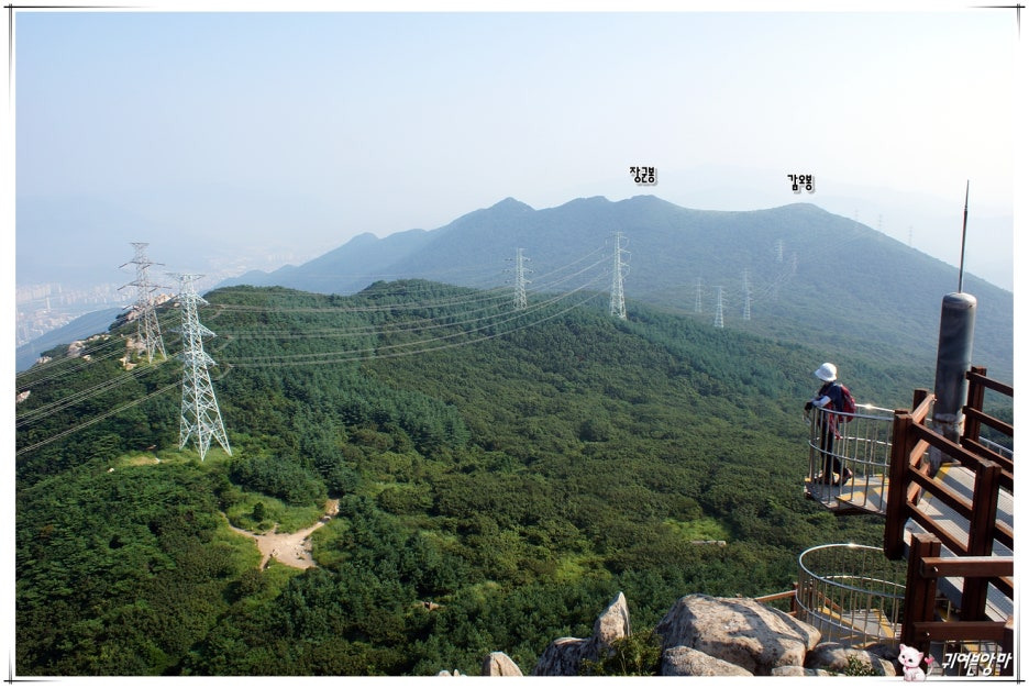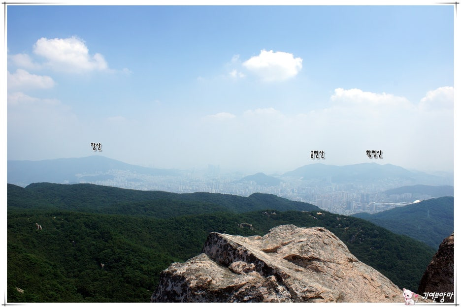 장군봉과 갑오봉이 가까이 보이고...천성산 능선도 희미하게 보입니다.
