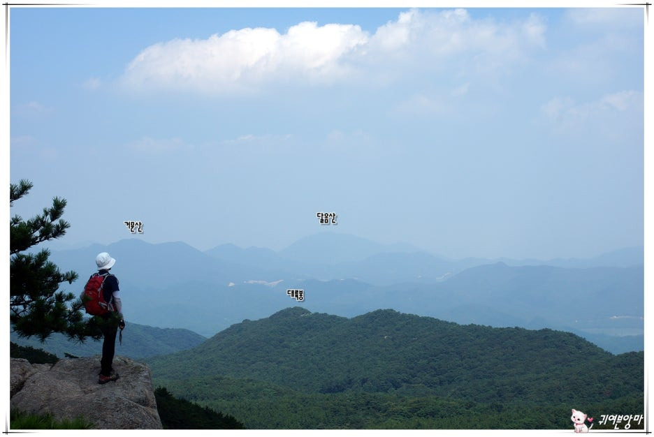 지나온 대륙봉과 망미봉 뒤쪽으로...봉우리 넘어넘어 보이는 달음산이 지난날의 추억을 떠올리게 하네요.^^