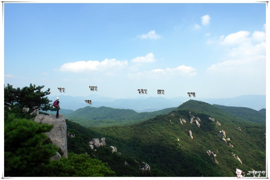 오후에 지나갈 망미봉과 파리봉...그리고, 상계봉도 아주 잘보입니다.