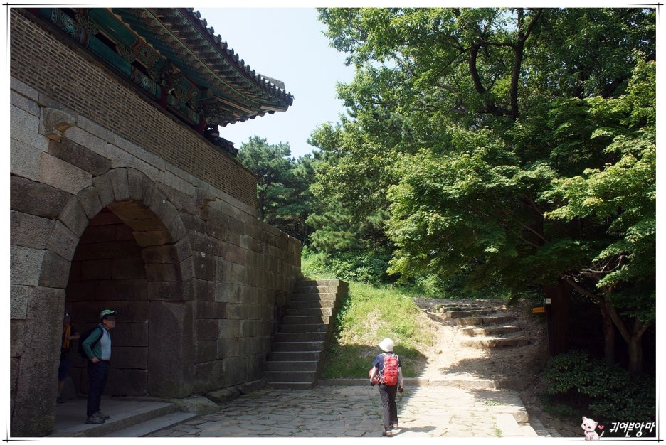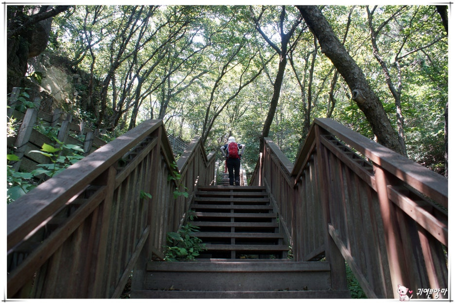 남문을 지나서는...긴 나무계단을 올라야 하네요.