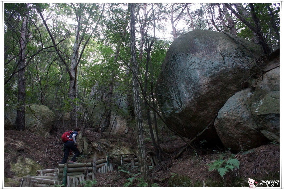 여러 작은 갈림길을 지나쳐 진행하던 중에...왼쪽으로 커다란 바위가 보이네요.