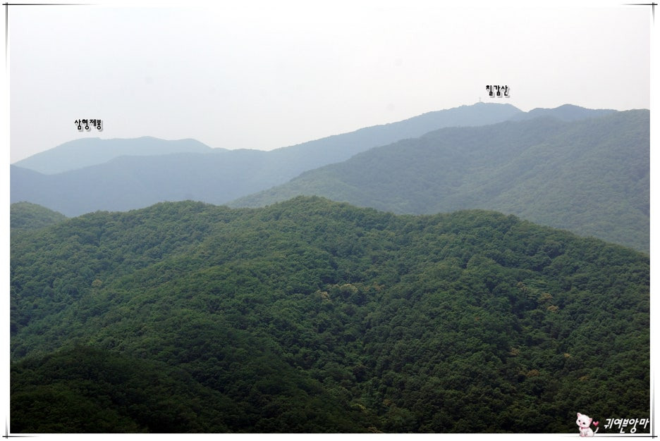 칠갑산 왼쪽으로는 만나지 못하고 지나쳤었던...삼형제봉도 흐릿하게 보입니다.