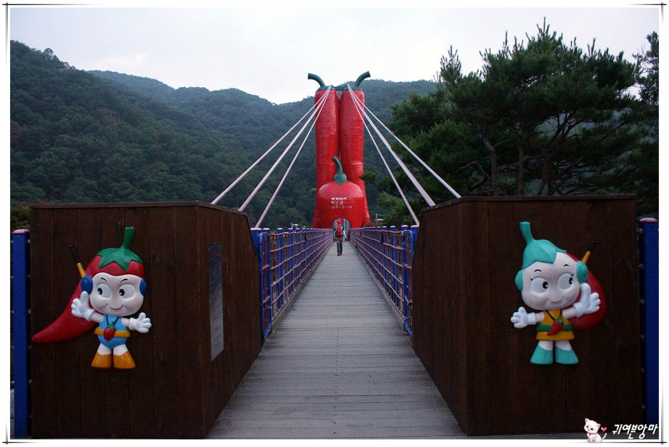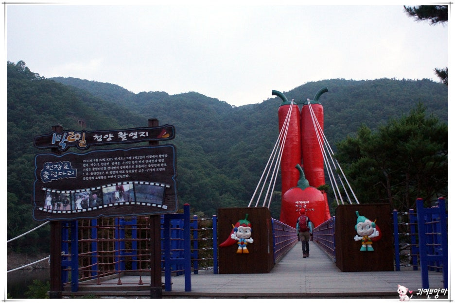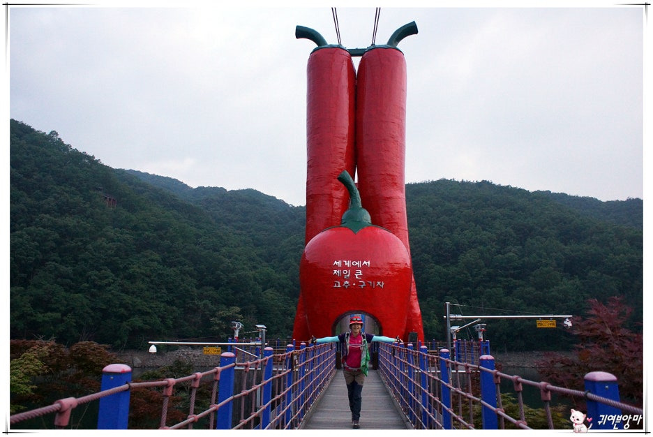 청양의 특산물인 고추와 구기자를 이쁘게 형상화한...출렁다리에 가까이 다가가 보니....