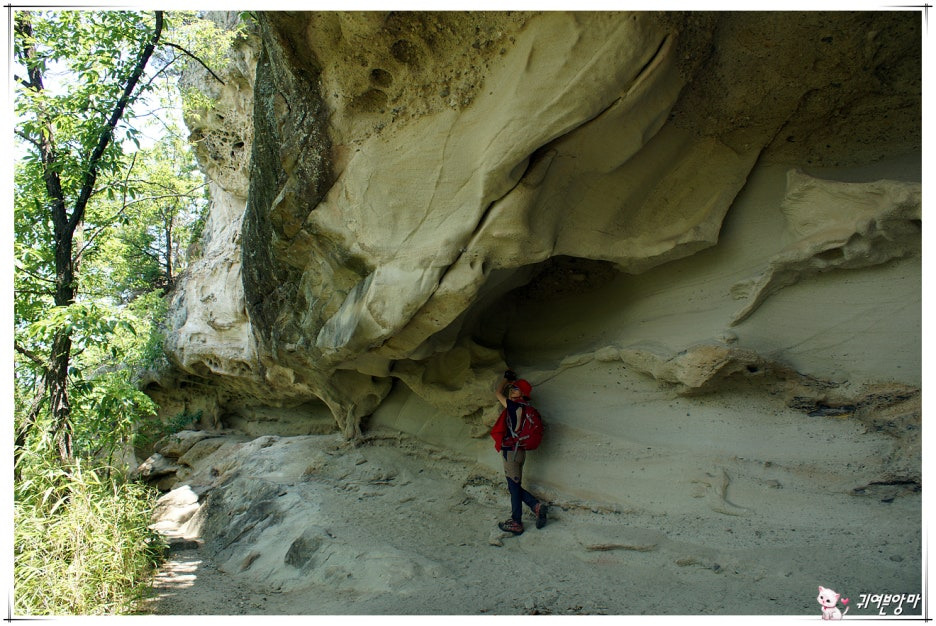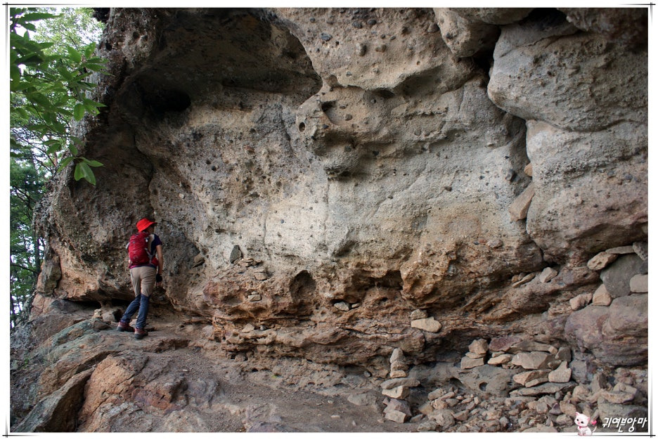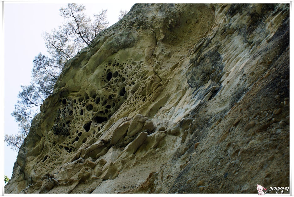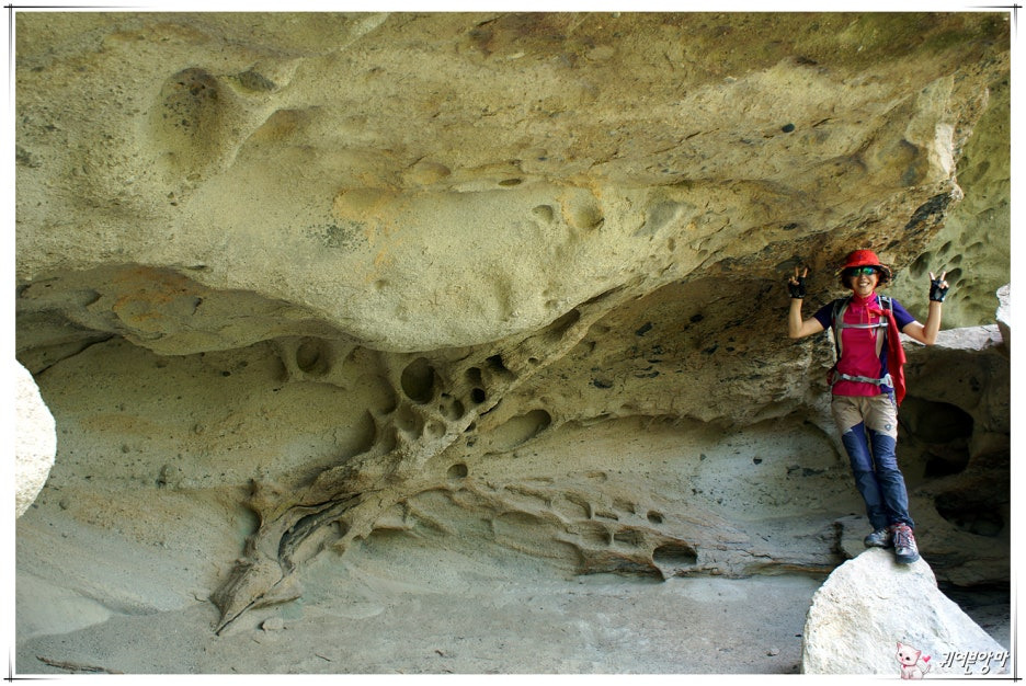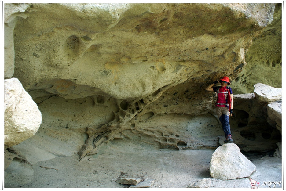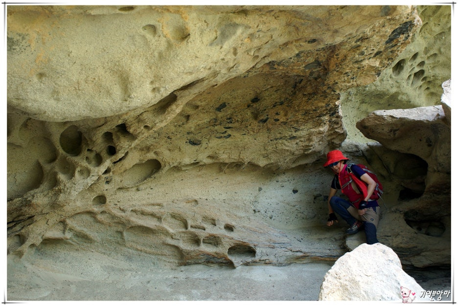 머리 위쪽으로는...구멍이 숭숭둘린 바위가 올려다 보이고....