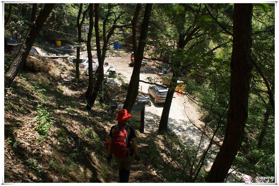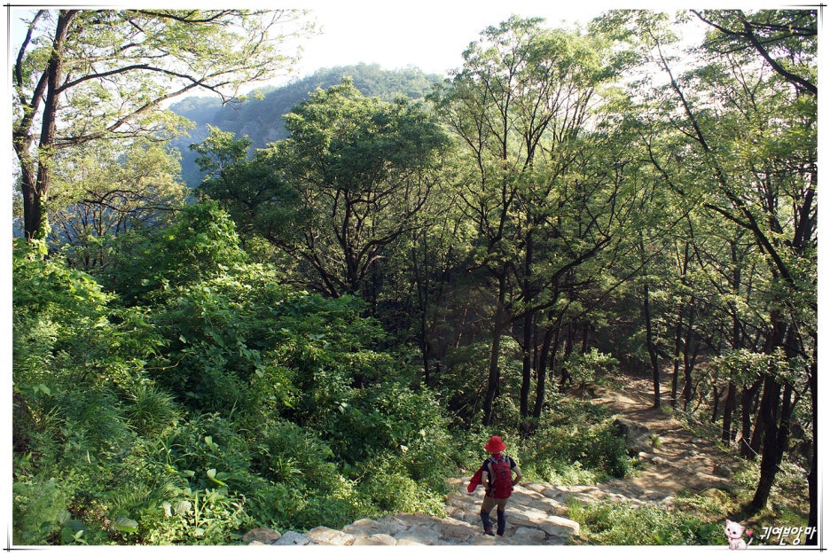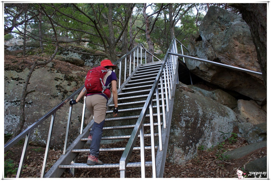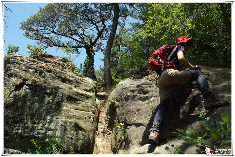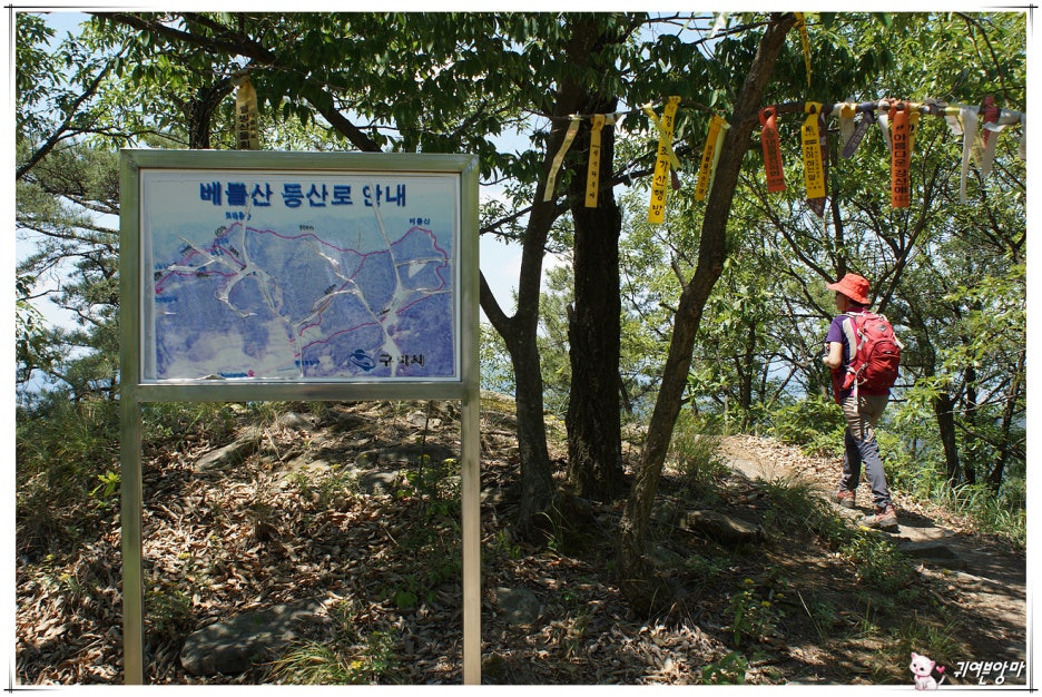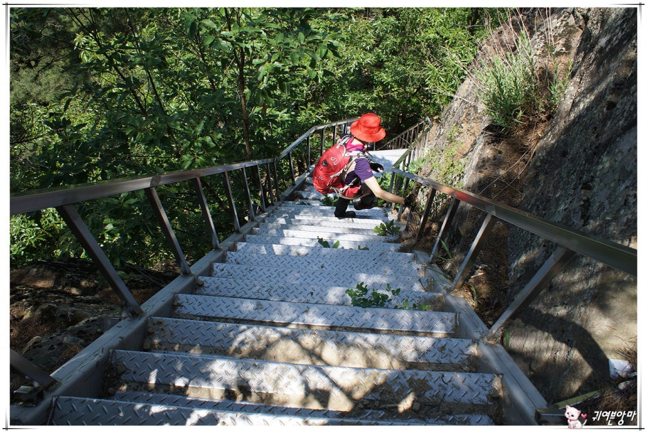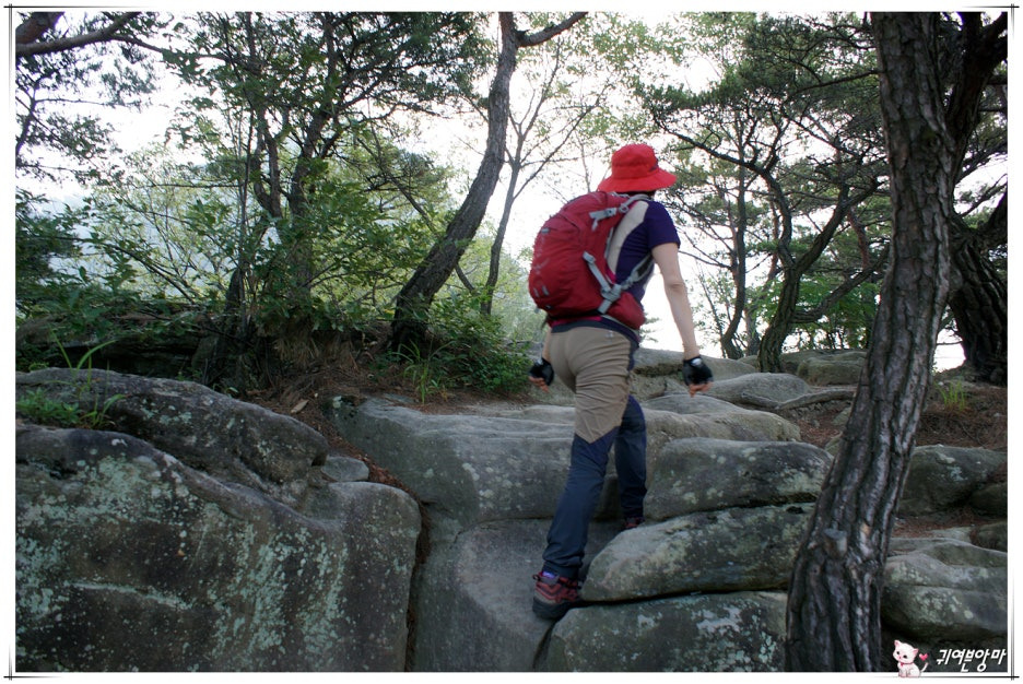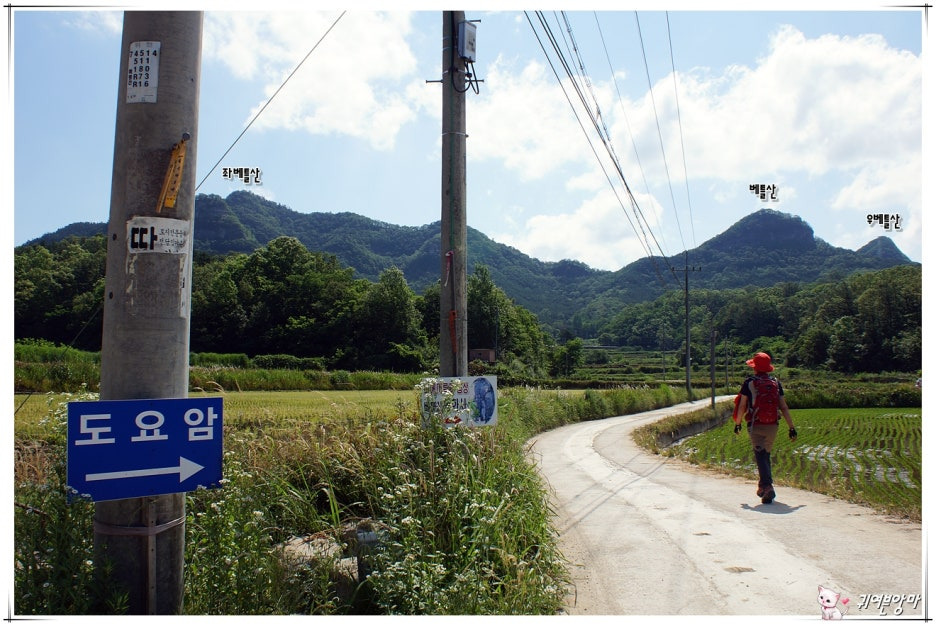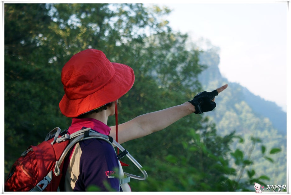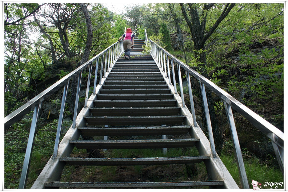 우린 베낭을 둘러메고...머리 위쪽에 있는 베틀산 정상을 향했네요.