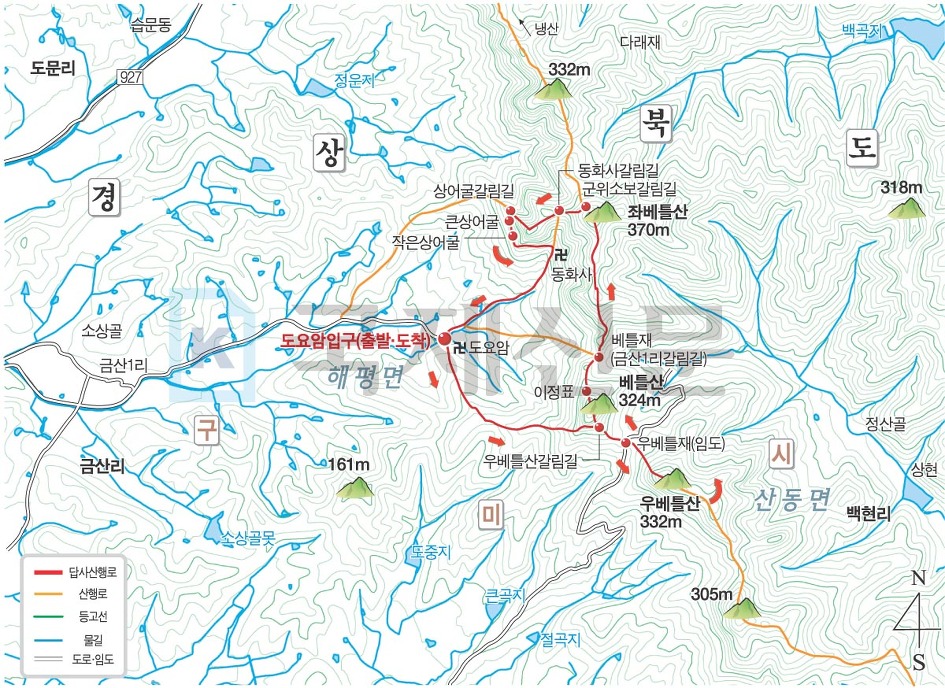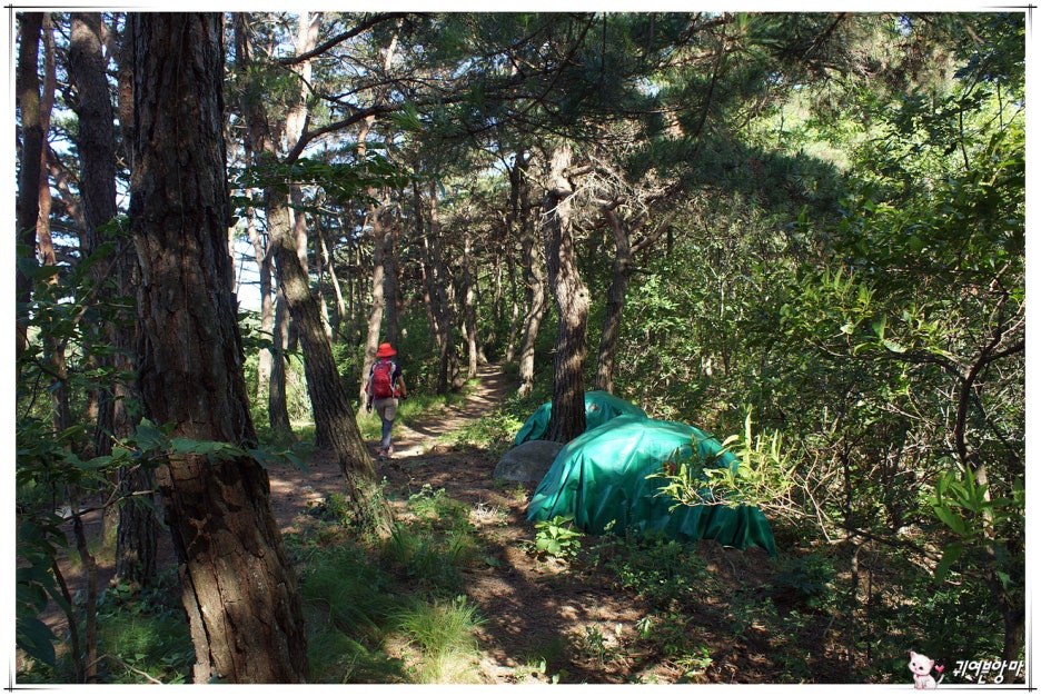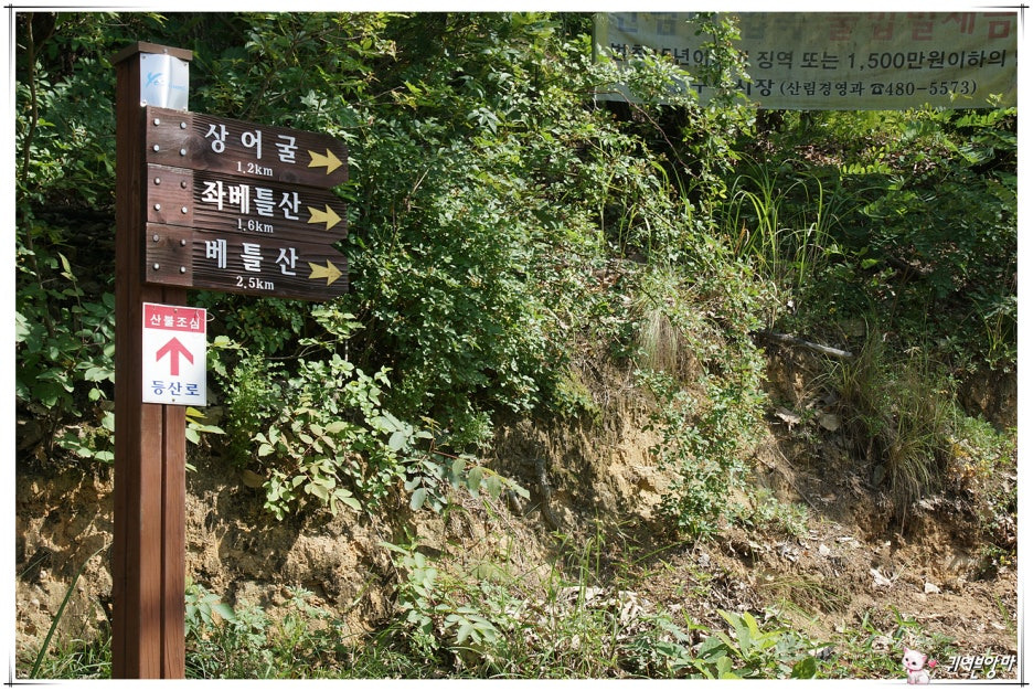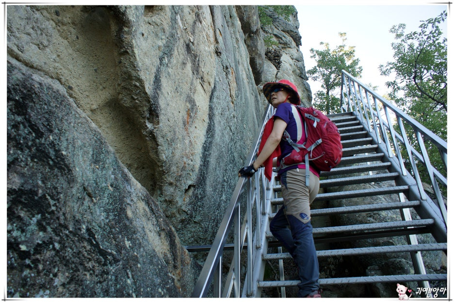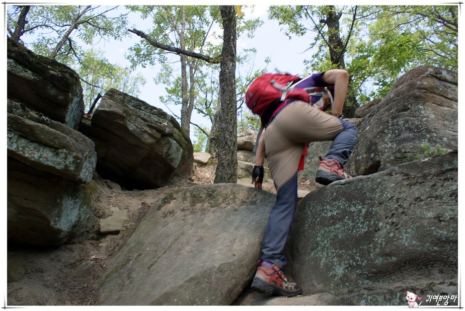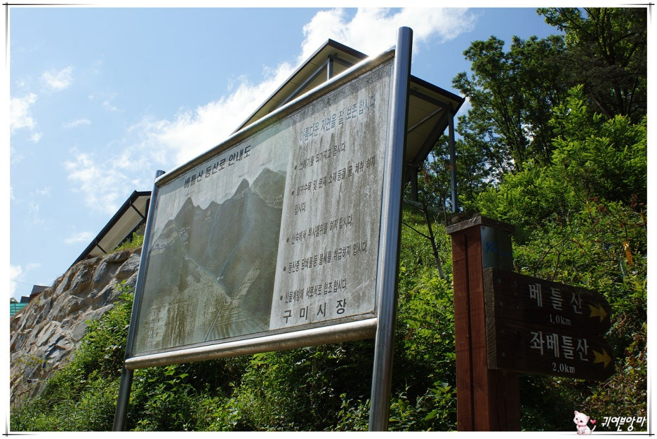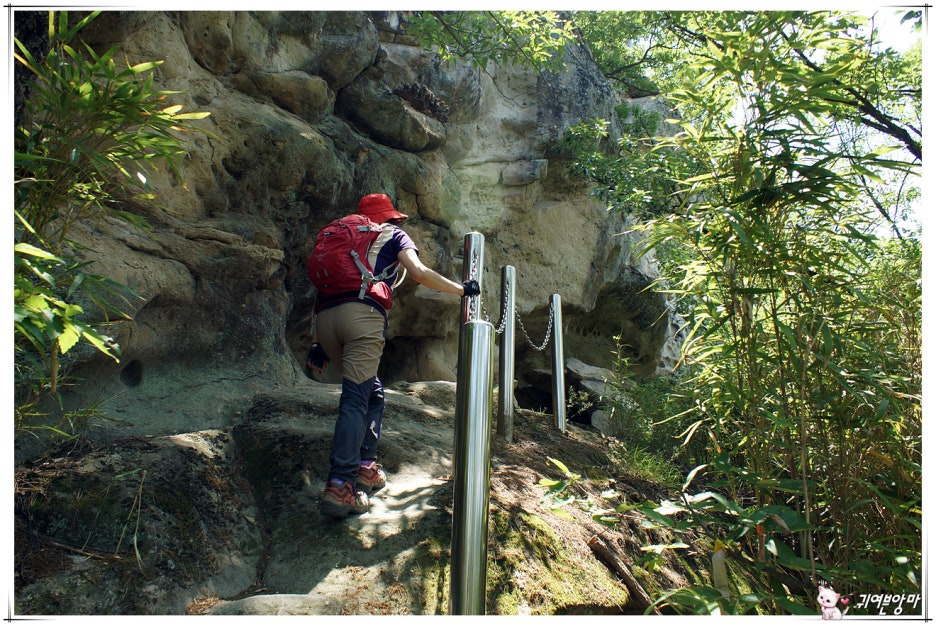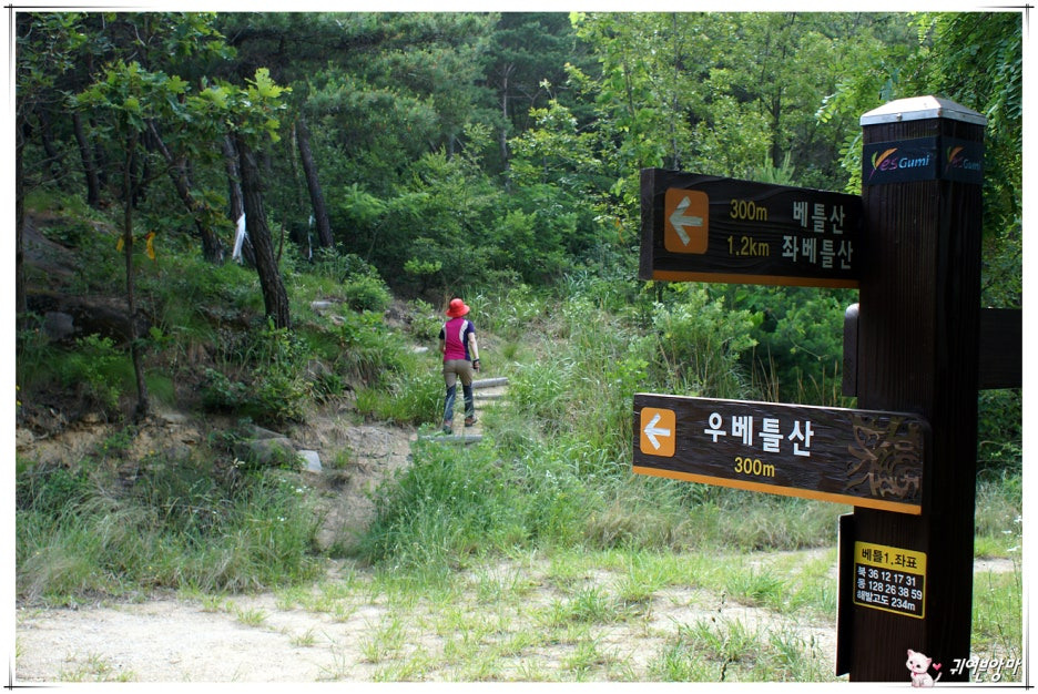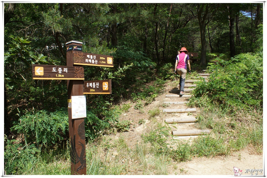 우린 베낭을 둘러메고...머리 위쪽에 있는 베틀산 정상을 향했네요.