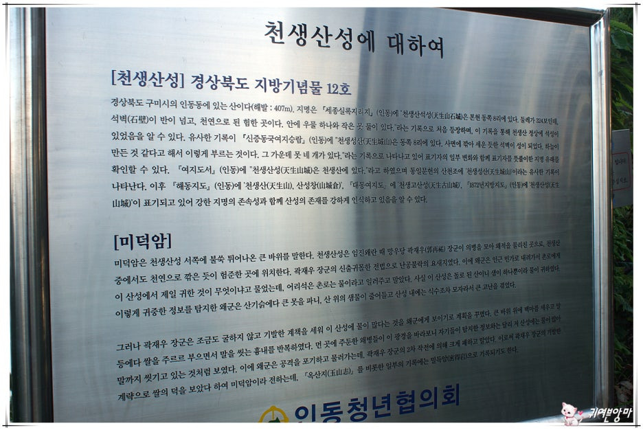 정상에는...이 곳 천생산성과 미덕암을 자세히 알려주는 안내판도 세워져 있고....