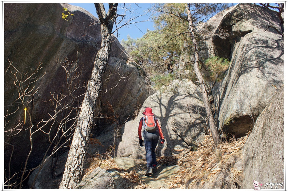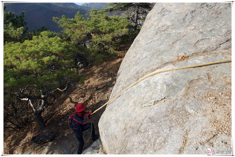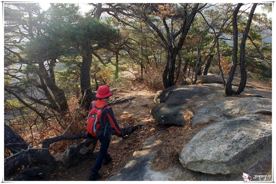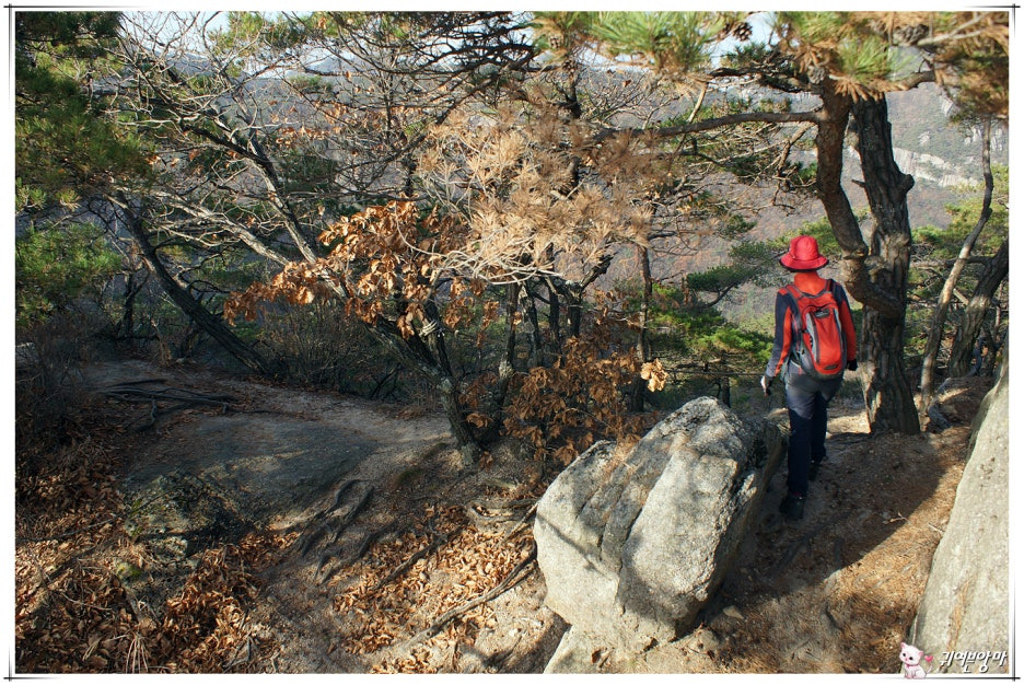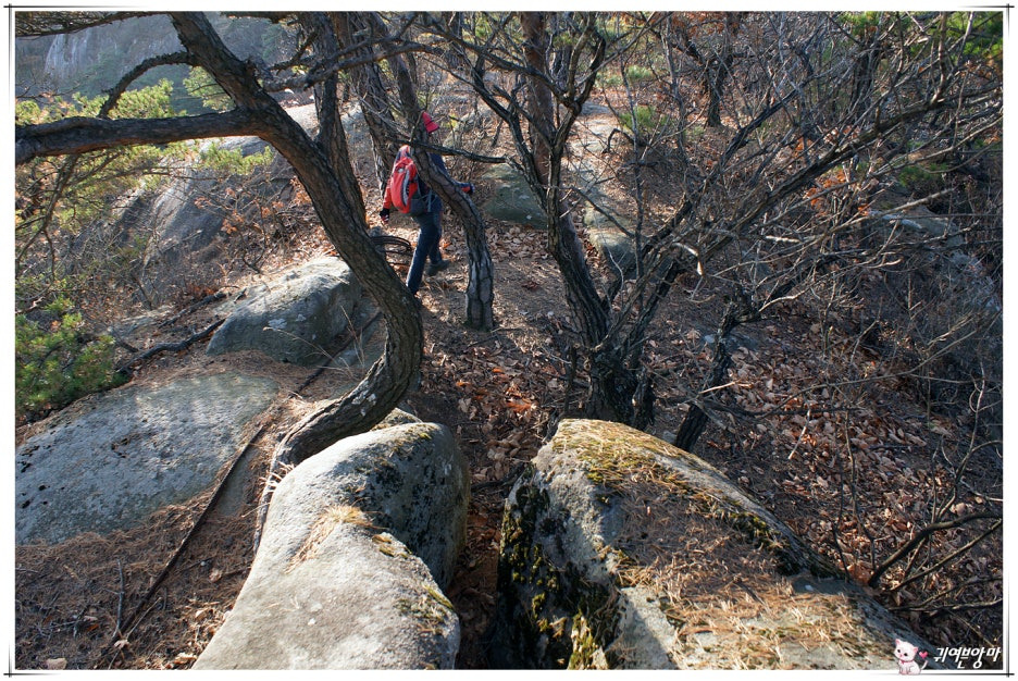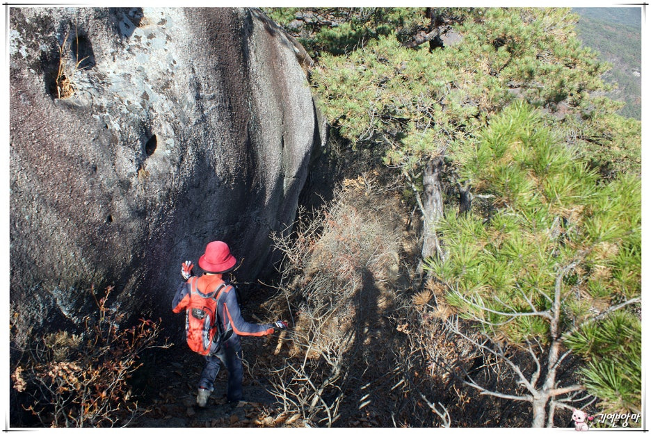 만만하게 보이는 바윗길은...마른 나뭇가지를 움켜잡고서 조심스럽게 올라갔습니다.