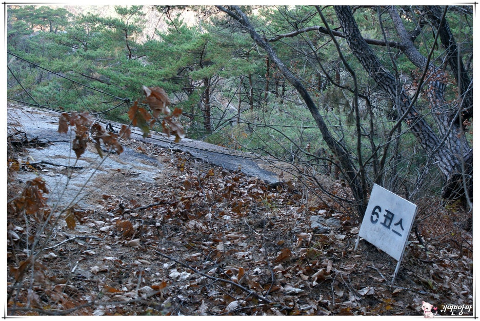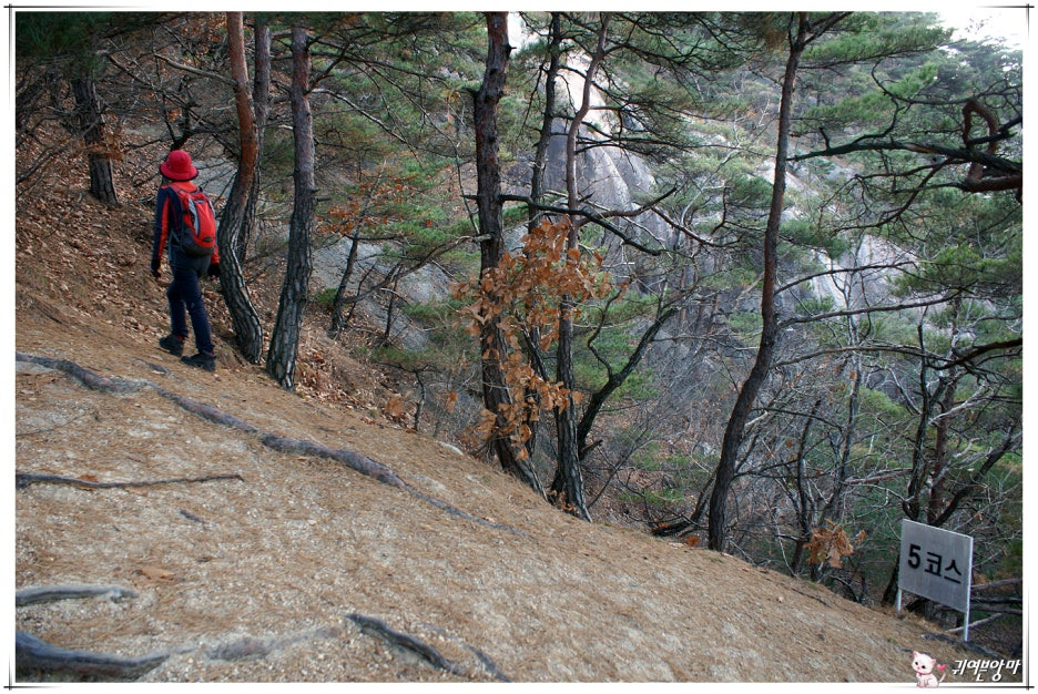 그렇게, 바위 절벽이 아찔하게 올려다 보이는...5코스 안내판도 지나치고....