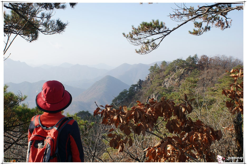 여인네의 아름다운 치마폭같이 흘러내리는 기암 절벽들을 힐끗거리며...바윗길을 이어주는 능선따라 올라갔습니다.
